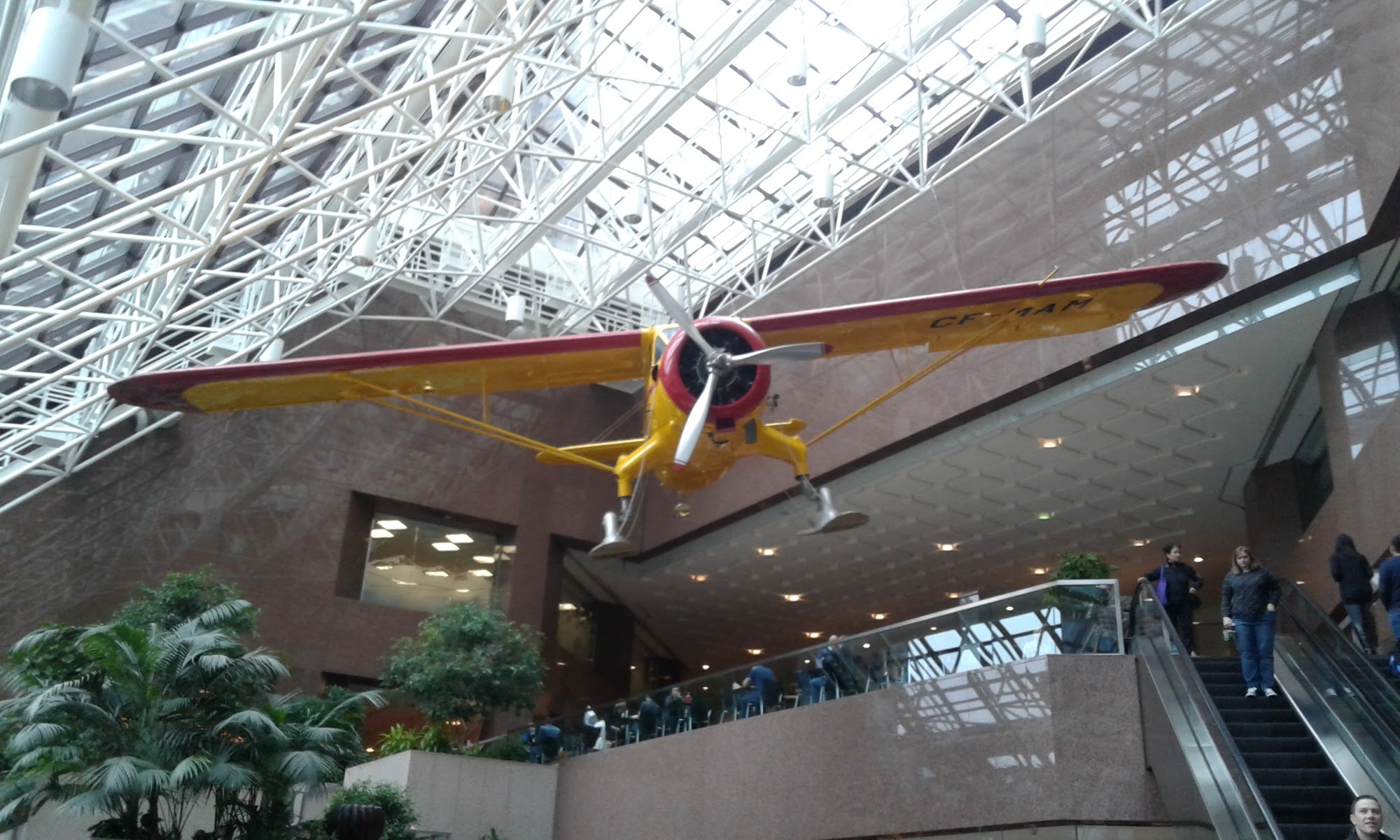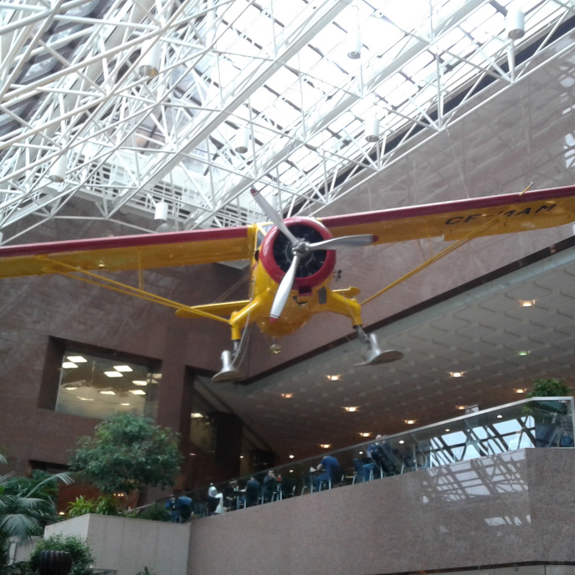 Suncor Energy Centre - East Tower is a well-maintained building located in downtown Calgary, featuring a clean and spacious interior. It includes a variety of amenities such as fast food restaurants, clinics, a barber, a convenience store, a dry cleaner, and an optometrist. The food court offers plenty of dining options, including Subway and Marcellos, with ample seating available for visitors. The building is notable for its beautiful garden and a large hanging plane in the atrium, which is set to be removed soon, making it a popular photo spot. Additionally, the East Tower connects to other buildings via the +15 walkway, providing easy access to surrounding eateries, especially during busy lunch hours. Overall, Suncor Energy Centre offers a vibrant atmosphere for both work and leisure.