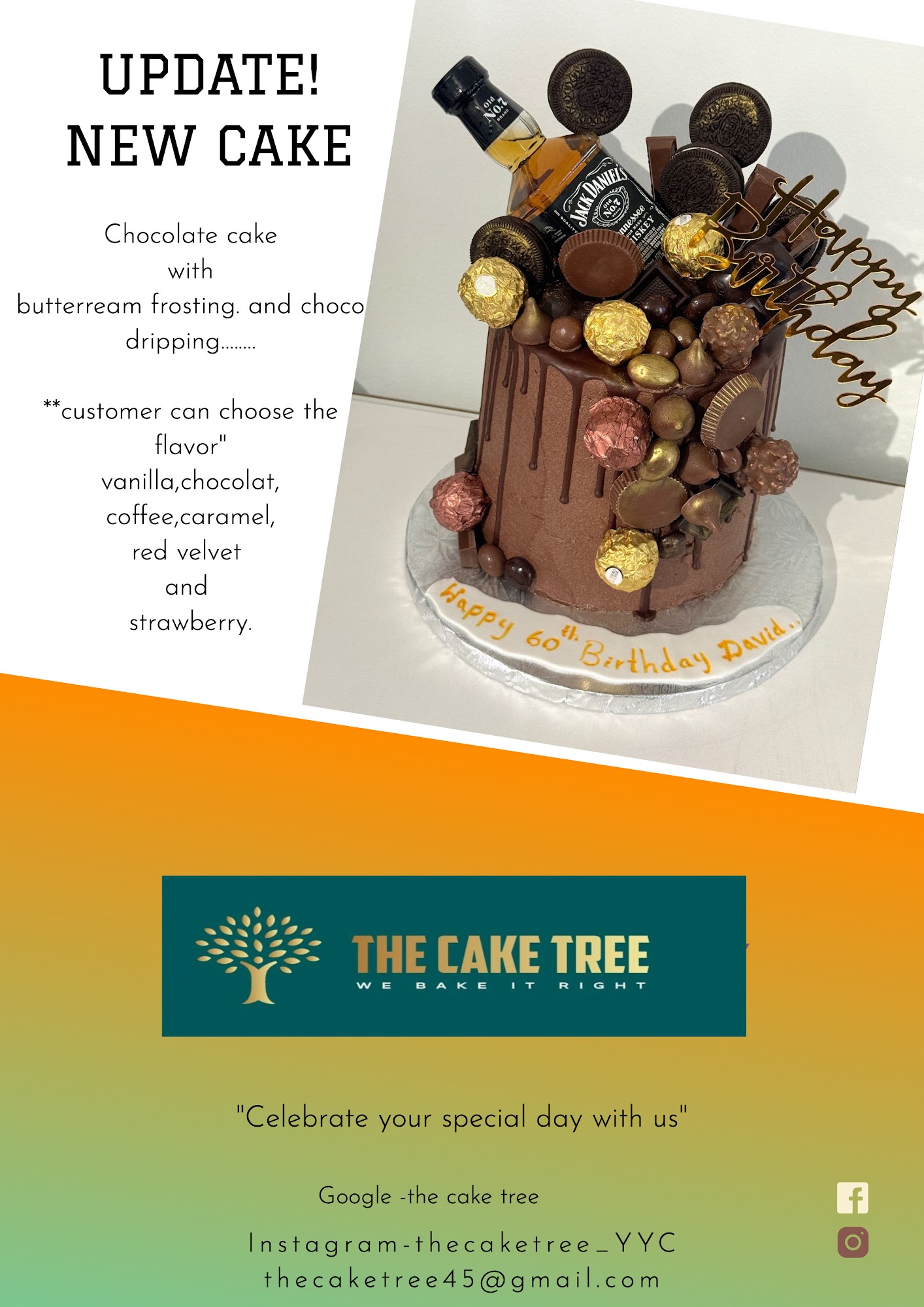 The cake was beautiful! And tasted amazing. Communication leading up to the delivery of the cake was great I was never left wondering. I highly recommend. Thank you for the beautiful cake and the great service!!!!