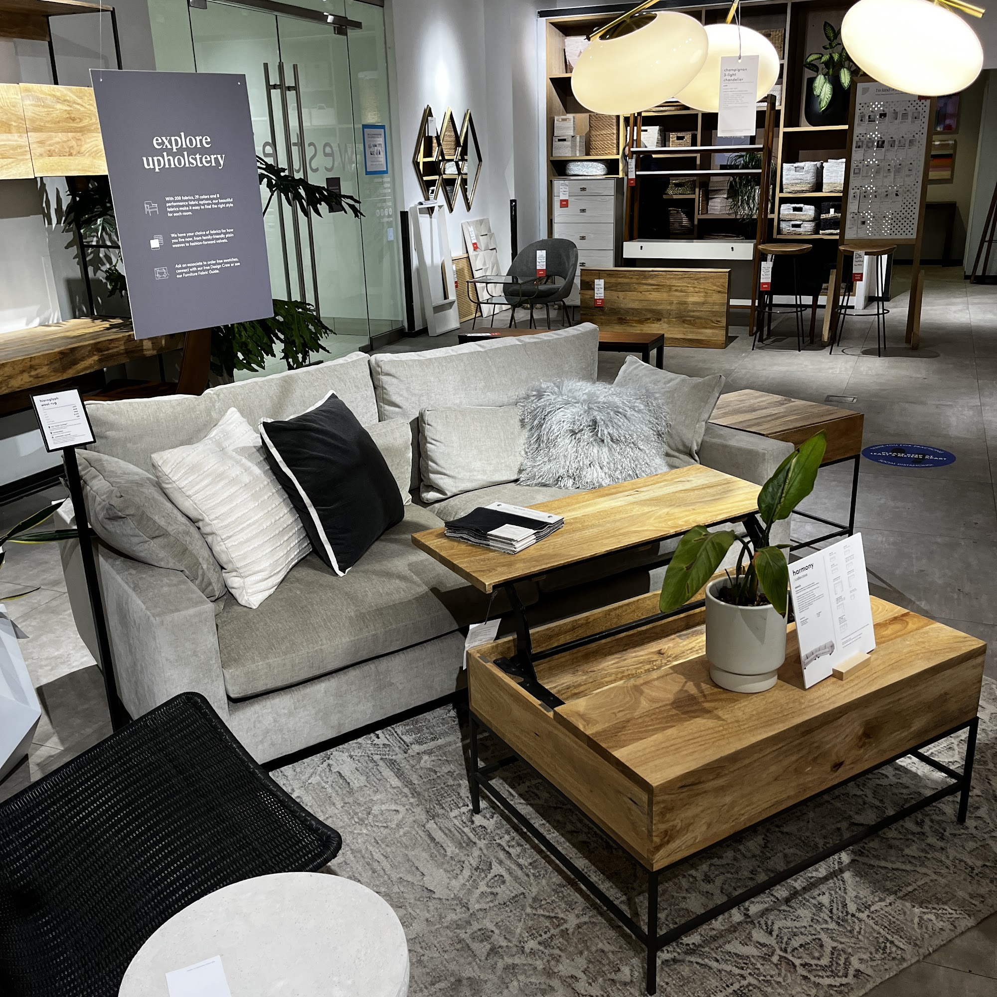 Do not shop here. Go to Crate and Barrel instead. The furniture looks great online but is not great quality or comfortable to sit on. If you tell the staff that you didn't like something then it will be because you are just too tall etc etc. They also do not honour pricing. What a complete waste of an afternoon.