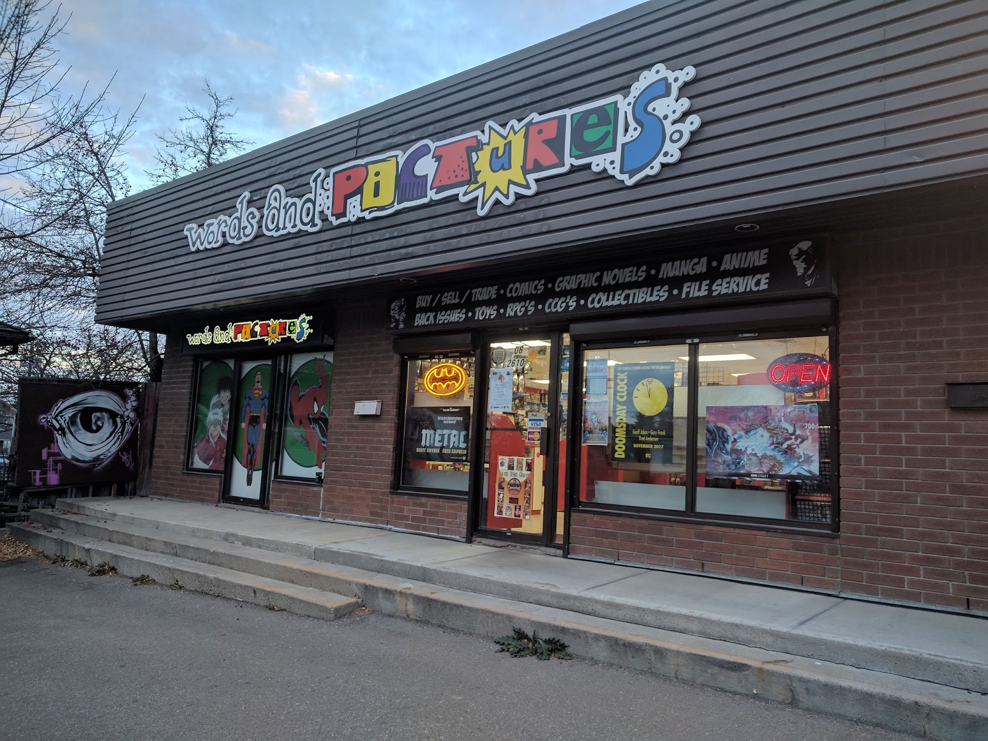 Words & Pictures is a very big store, possibly the biggest in the city, with a huge and awesome selection of comics, toys, and collectibles. It offers vintage back issues, new issues, comics by local creators, a young reader section, trade paperbacks, graphic novels, manga, figures, games, and supplies. The staff is nice, super friendly, helpful, kind, thoughtful, and well-read. They provide excellent recommendations and insight, help find anything wanted, and are very attentive. The prices are very fair. They offer a subscription service and a special-order service for comics. This place is a gem and is highly recommended for anyone looking for a great comic shop.