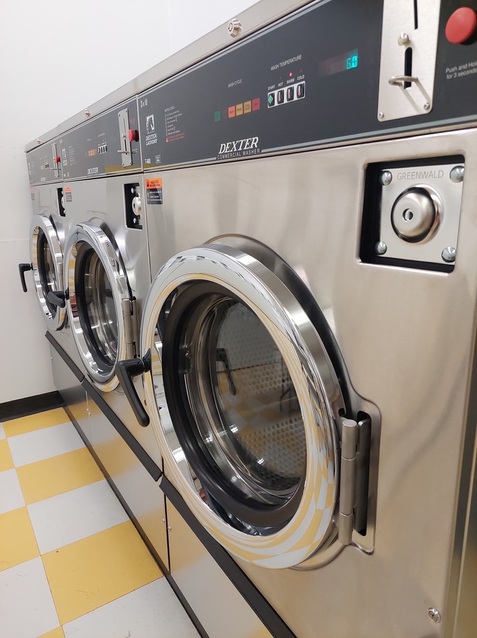 Clean and lots of affordable sizes of machines to choose from. Has a bathroom too.