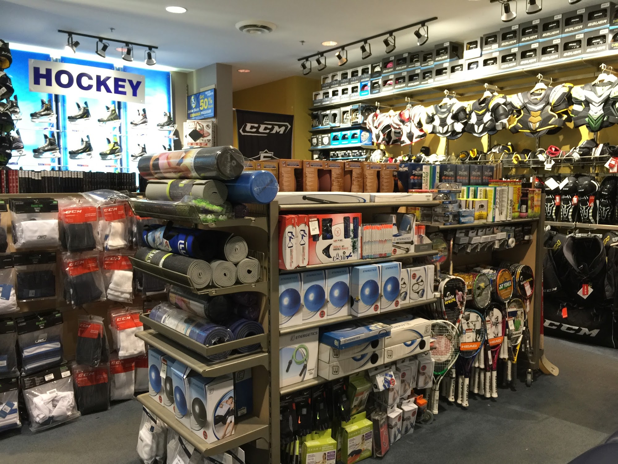Well-stocked sporting goods shop. Some items on sale in the first days of September