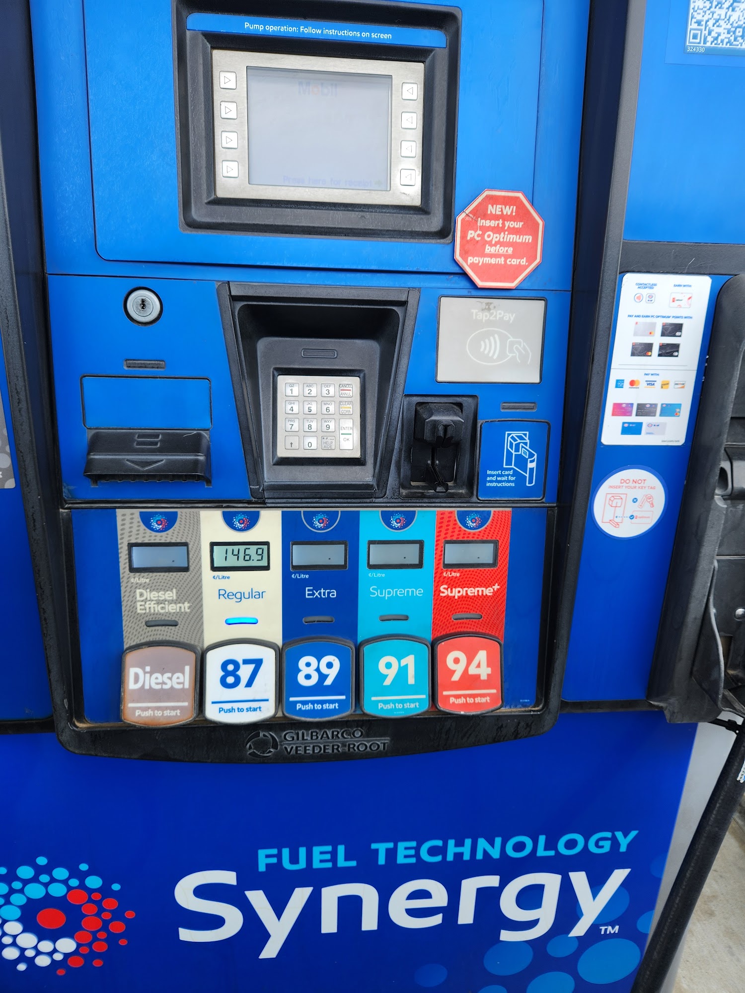 Mobil is a small gas station with a convenient store, offering friendly and efficient service from its staff. The pumps are clean, and the checkout process is smooth. Customers appreciate earning PC points, which are 35 per liter. However, visitors should be aware that certain times may bring strong odors due to staff, and the smell can be quite noticeable. Overall, a decent place for quick refueling and shopping.
