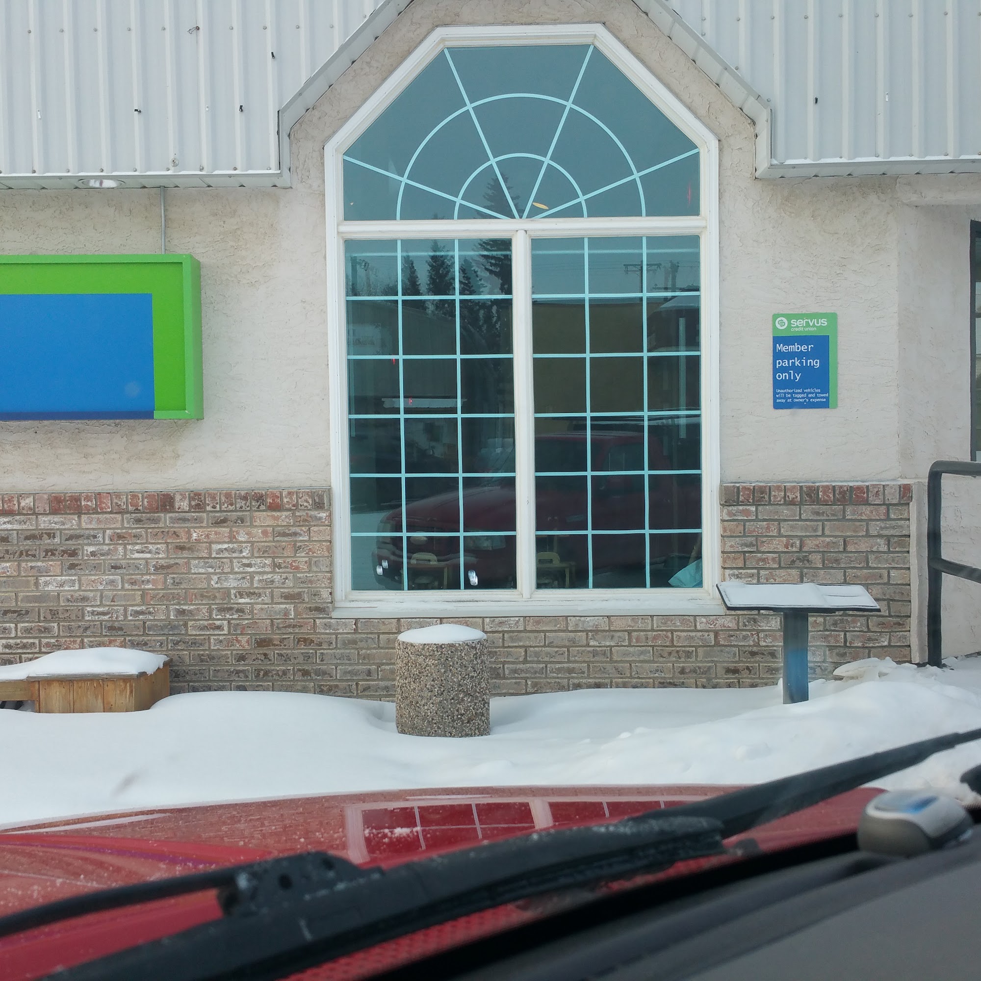 Nice small villiage Servus Credit Union! Never busy, and banking is a snap here! Also has a nice oversized parking lot, for the size of the location. No real complaints here!
