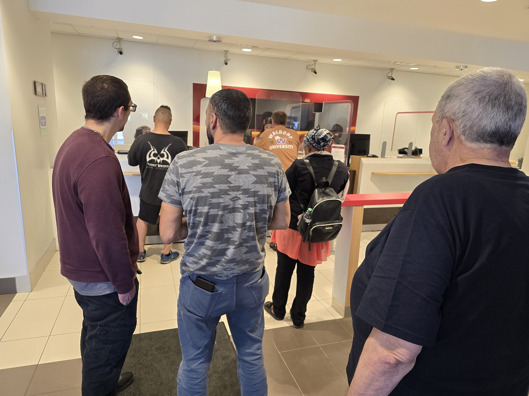 Only 1 teller and people are waiting. In line weird management not responsible