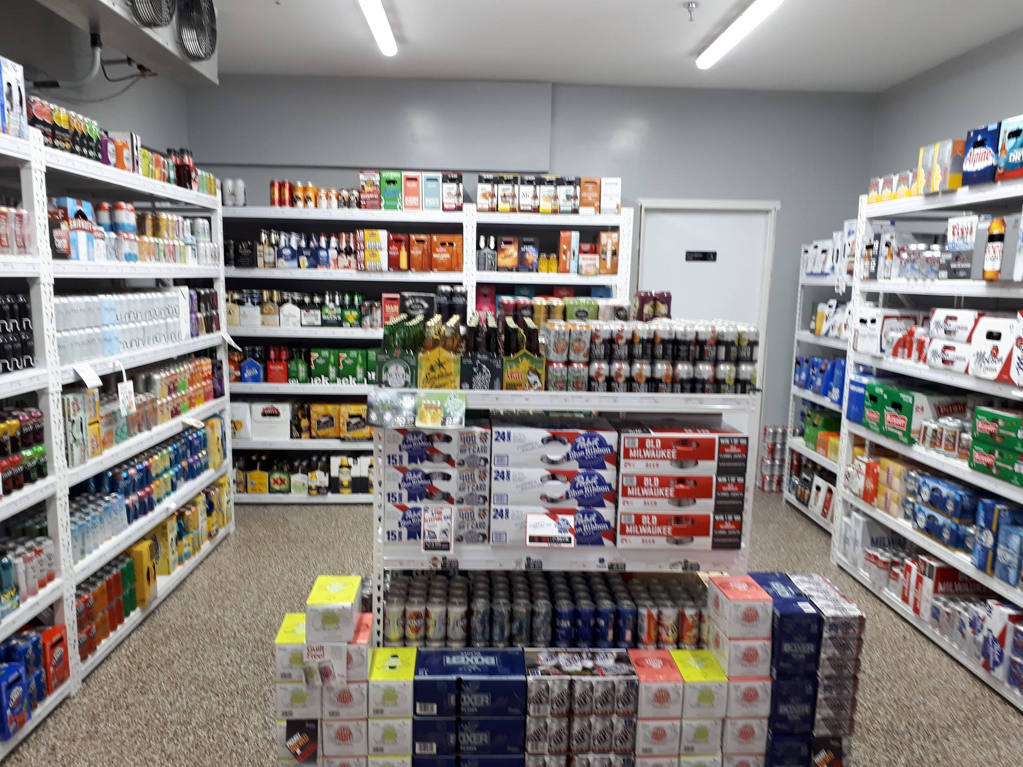 Friendly late obviously precautions working alone, not best wine shop ( I know nothing about whine just know most store is right in the title) But. Need beer for the boys garage shindig camp great service and great prices.