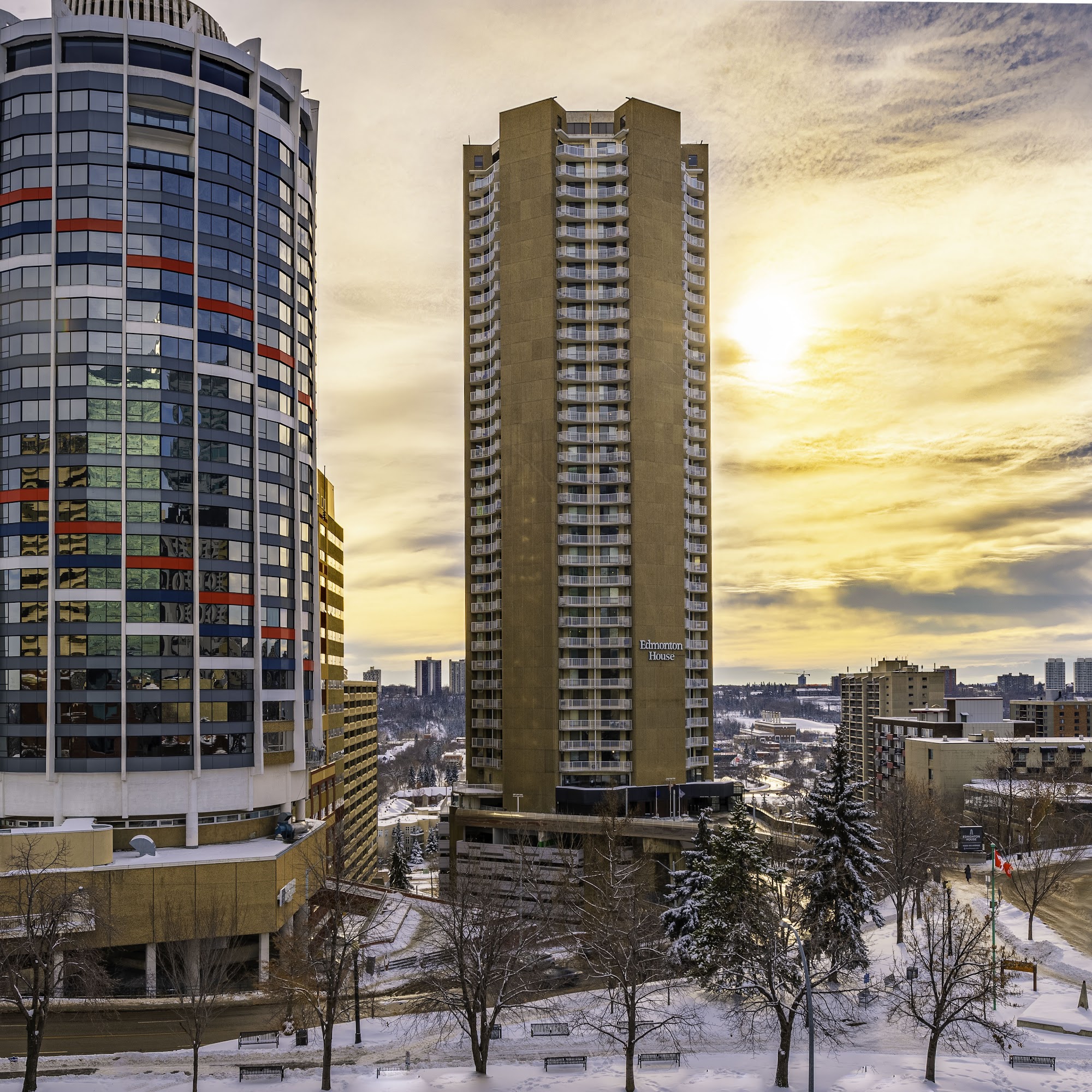 Edmonton house is a hotel style apartment building with a swimming pool and gym. It is located right Downtown near everything you could need. Right next to homeless camp so watch your cars.