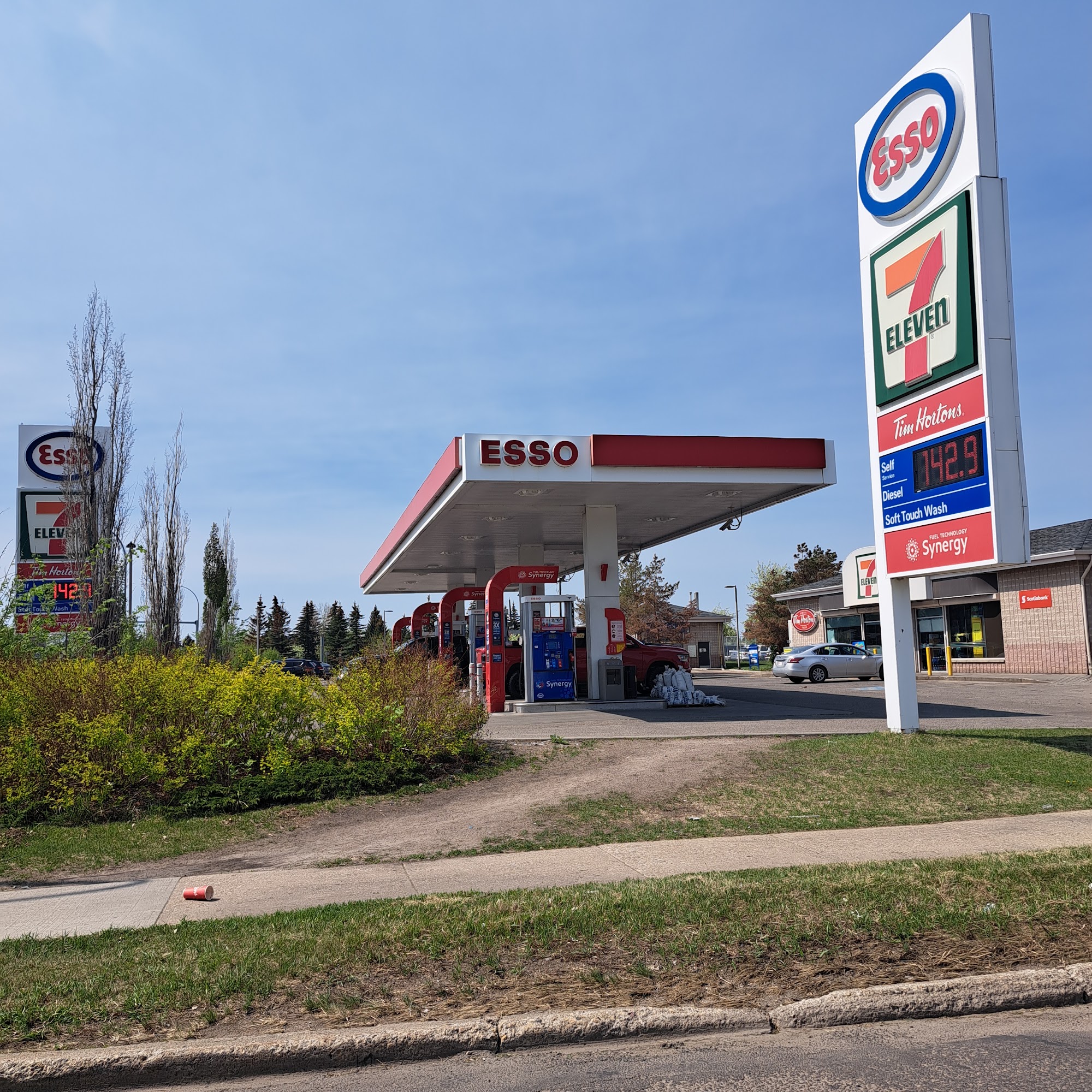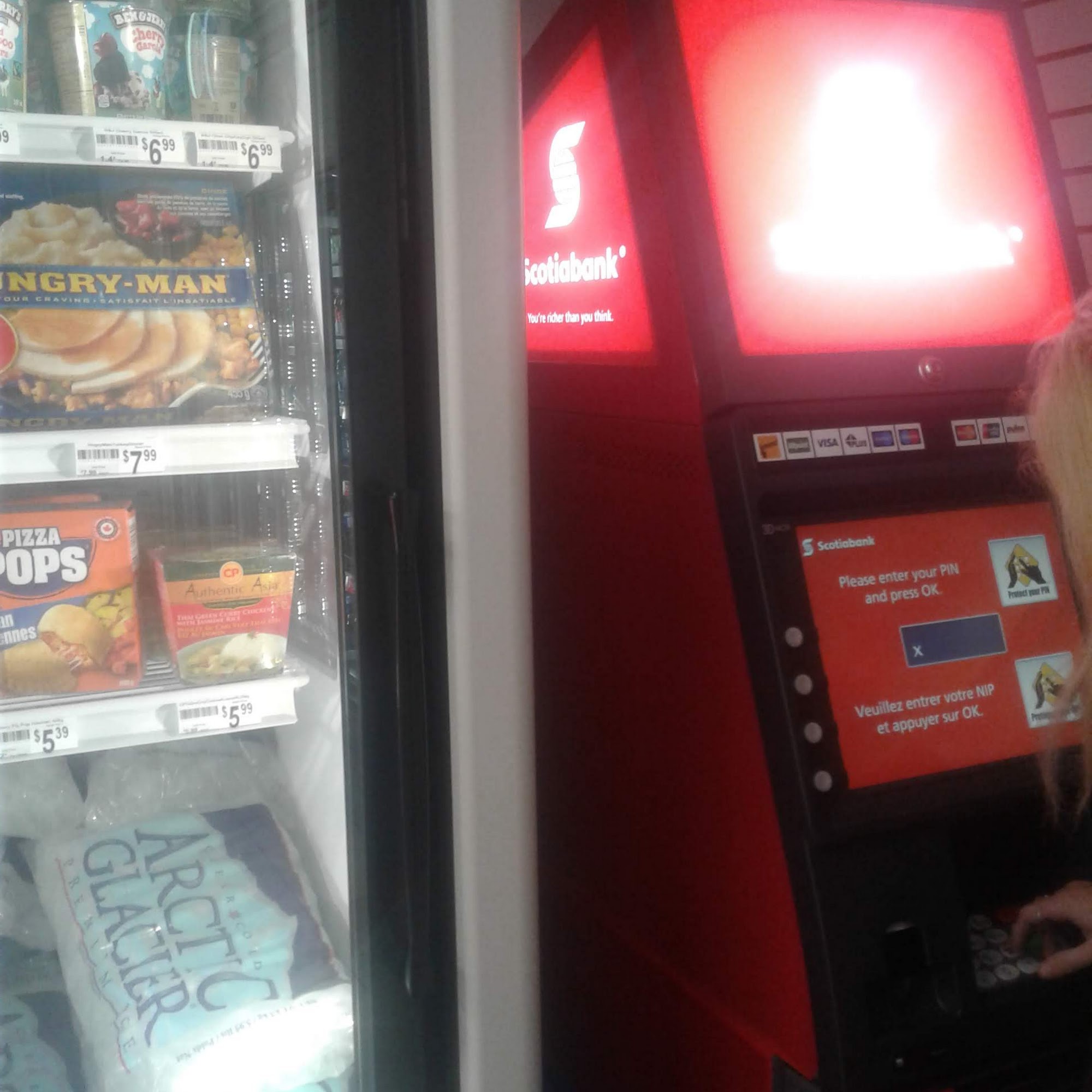 The staff are friendly despite having to deal with a fairly constant stream of loiterers. They play classical music outside does seem to help in keeping their visits short. Good layout to the store, it is very clean and I feel comfortable going inside and buying what I need. They have a 7-11 inside.