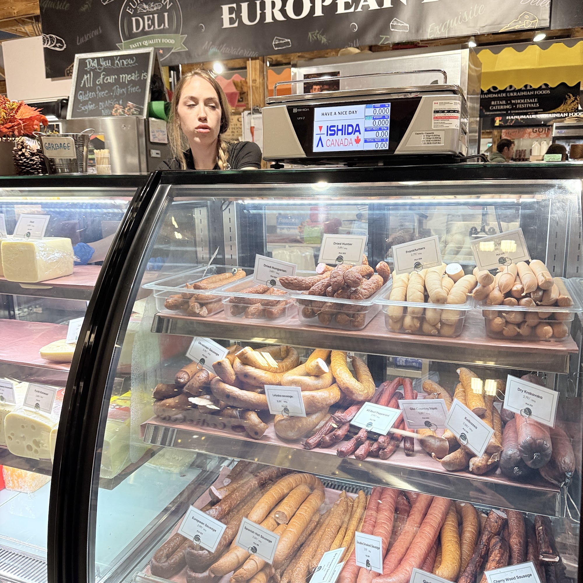European Deli is a popular spot at the Bountiful Farmers Market where customers find authentic European flavors. The store offers a wide variety of sausages, cheeses, and specialty products. Fresh sausages include Krakowska and other Ukrainian varieties. Customers praise the cottage cheese and smoked cheese, noting they taste like home in Ukraine. The deli also sells olives, pickles, sauerkraut, fish, and other tasty items. Everything is always fresh and affordable. Staff are friendly, attentive, and helpful, providing a service with a smile. Many customers recommend the deli for its great variety.
