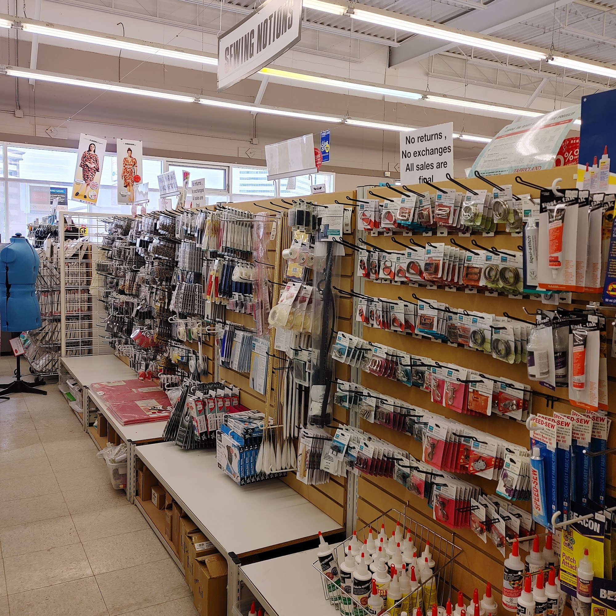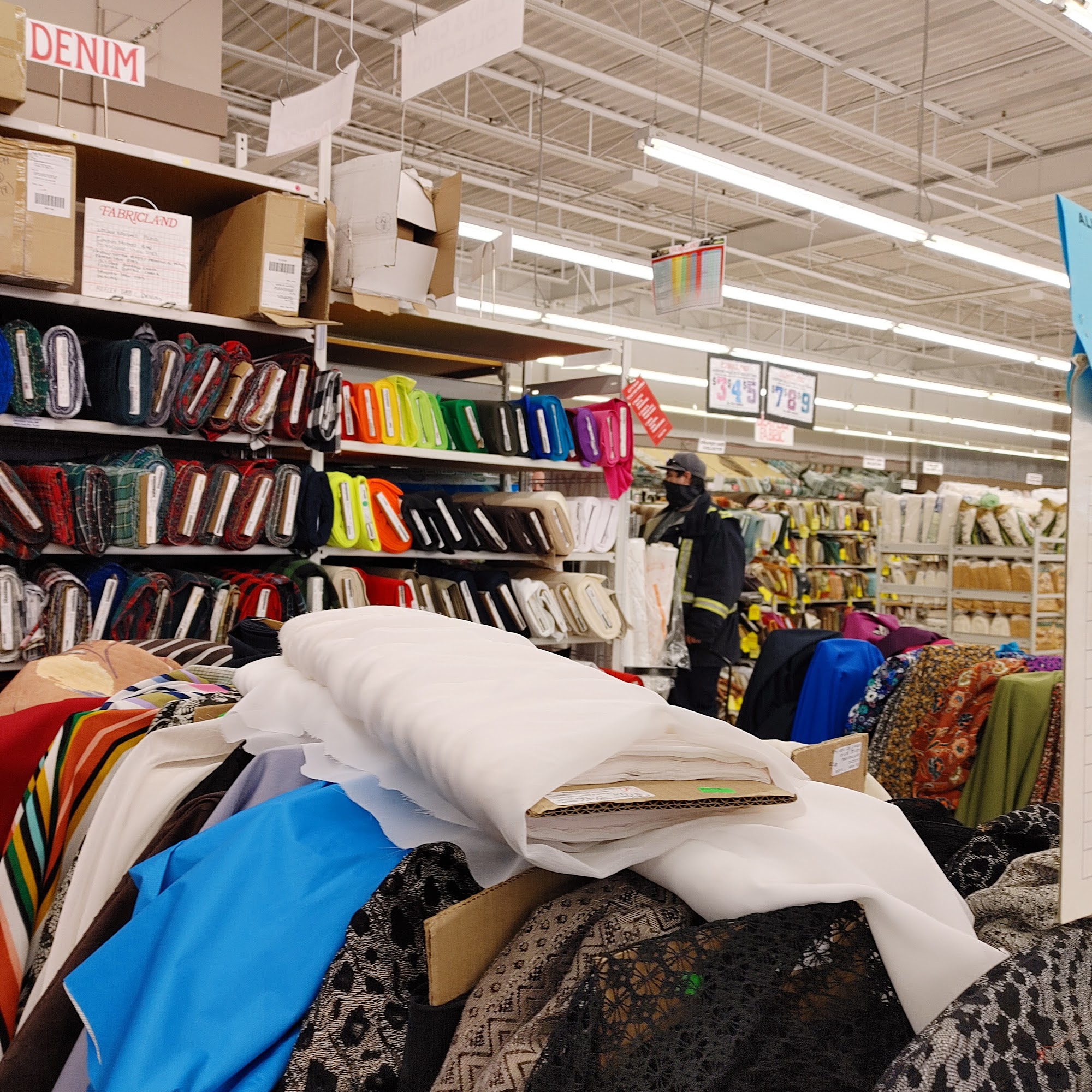 Fabricland is a fabric store located in Edmonton, known for its friendly staff and a good selection of fabrics. Customers appreciate the cleanliness of the store and the variety of fabric choices, including some good sales, especially for members. However, many reviews highlight some significant issues. The shopping baskets are reported to be dirty, and the store can feel disorganized, making it difficult to find specific items. Some customers have noted that the staff may not be very knowledgeable or helpful in locating fabric, and there is a lack of signage within the store. While the store offers a decent array of products, some shoppers feel that the selection is not as extensive as other Fabricland locations. Additionally, the checkout process is considered outdated, with old-fashioned tills and no computerized system. Overall, Fabricland serves as a convenient one-stop shop for sewing and stitching supplies, but potential customers should be prepared for a less-than-ideal shopping experience and may need to invest time in wandering the aisles to find what they need.