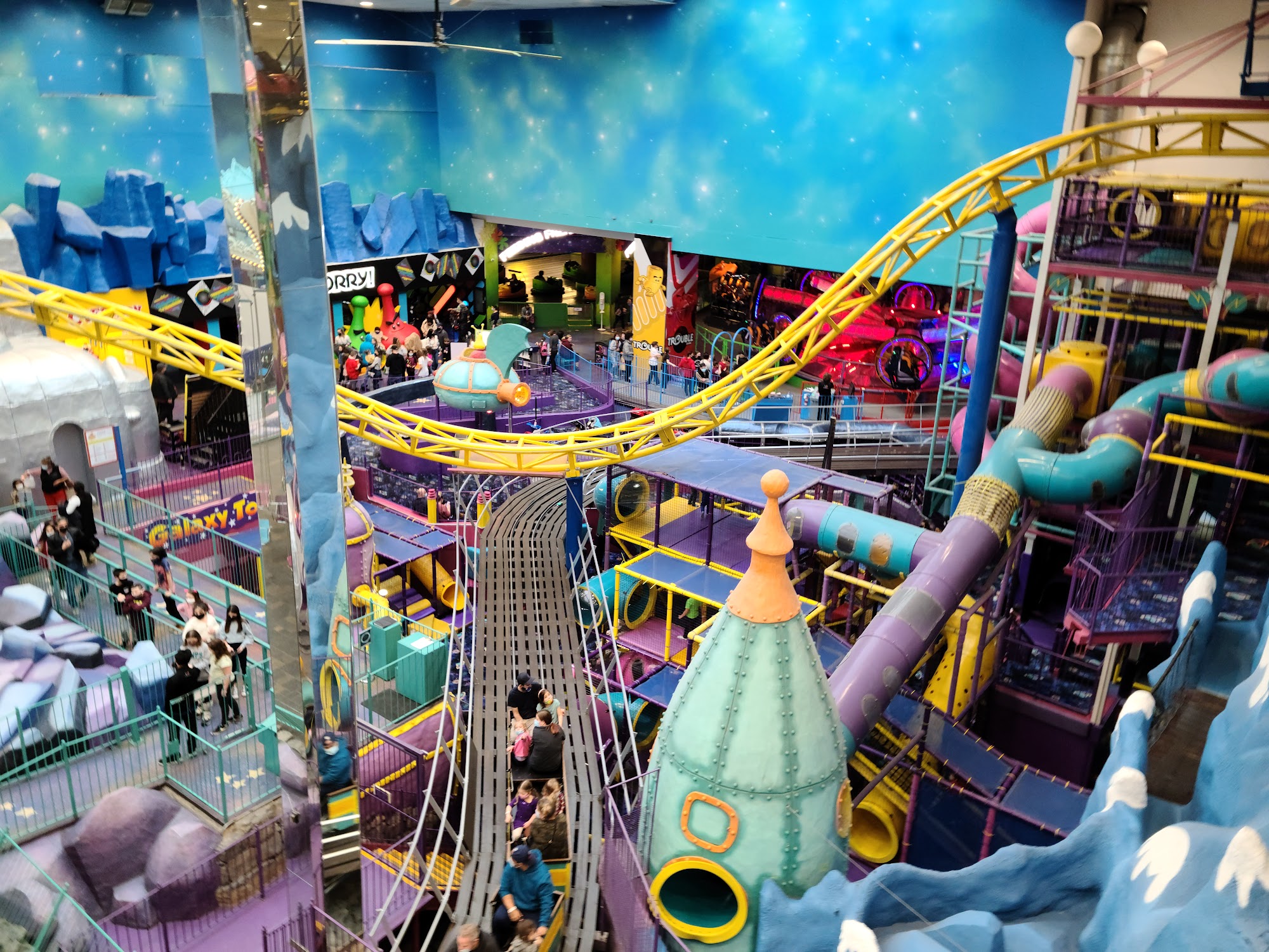 Galaxyland, located within the West Edmonton Mall, is an indoor amusement park that offers an impressive array of attractions and rides catering to visitors of all ages. The vibrant atmosphere and well-maintained facilities create an enjoyable experience for families, with options ranging from gentle rides for young children to thrilling adventures for older kids and adults. Visitors have been pleasantly surprised by the variety of rides and activities available, with something to suit every preference. The park is praised for its safe, energetic, and family-friendly environment, where children can fully immerse themselves in the amusement park experience, even during colder weather. The staff are described as friendly and helpful, and the overall organization of the park is commended. While the admission price of $61 per ticket may be considered steep by some, the majority of reviewers have found the value to be worthwhile, particularly for the amount of time spent enjoying the various rides and attractions. However, some have noted that the park may not offer enough to warrant an extended visit for the cost. Overall, Galaxyland is widely recommended as a fun and memorable destination for families, offering a unique indoor amusement park experience that is well-suited for visitors of all ages.