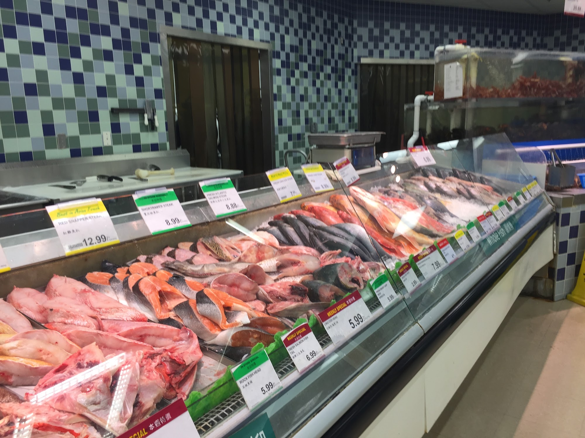 Large quantity of Asian food from many different Asian countries, good variety of fresh seafood and vegetables, food stores.