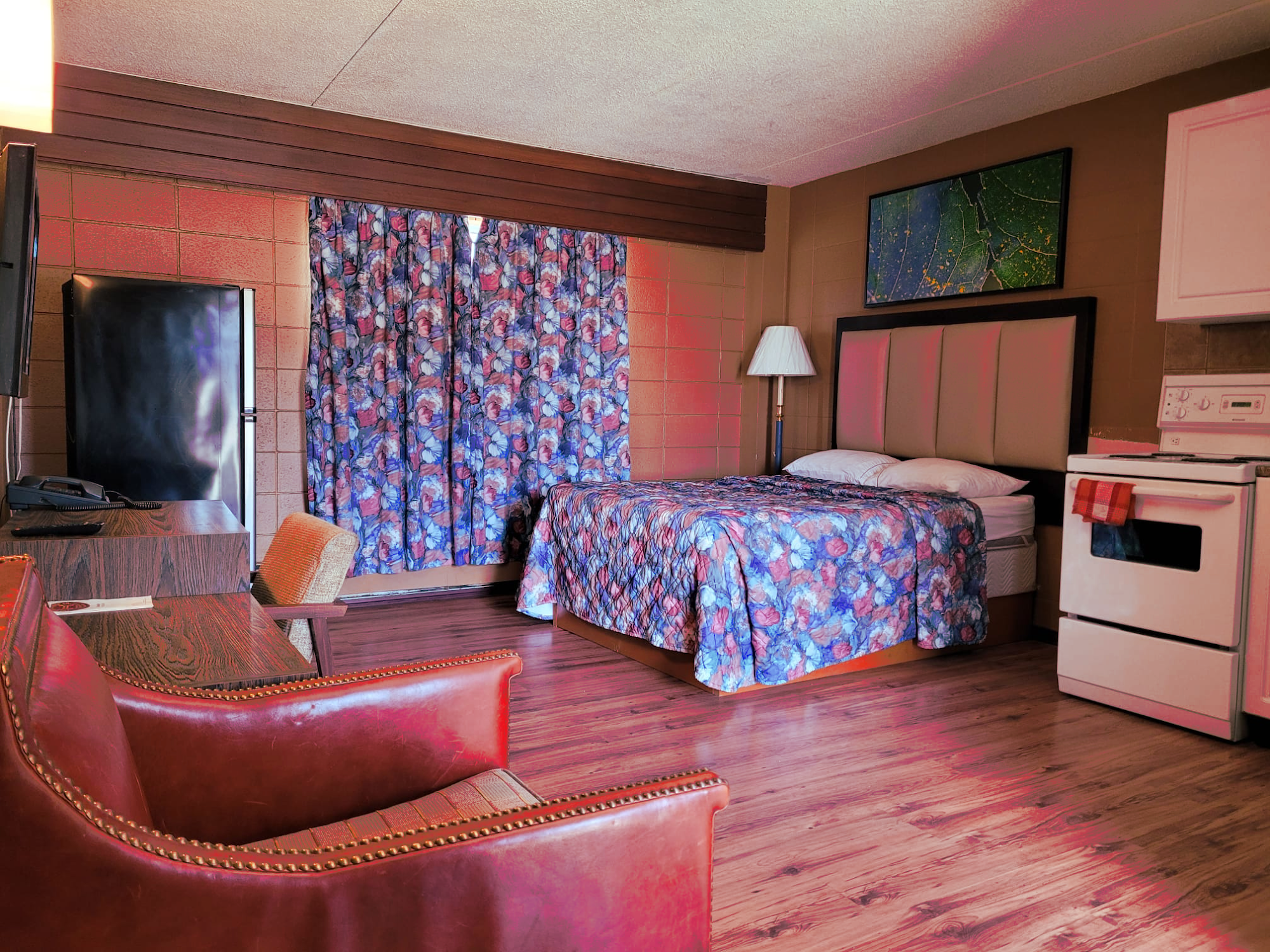 A simple small town motel, with excellent service. Great value.Large room, clean, and good shower pressure. Perfect for my work trip to Fairview.