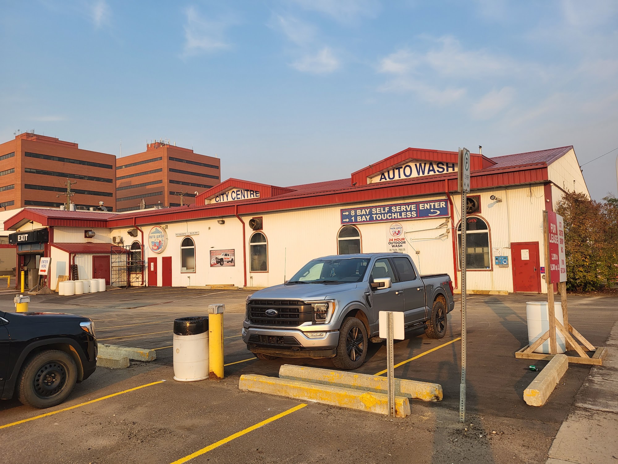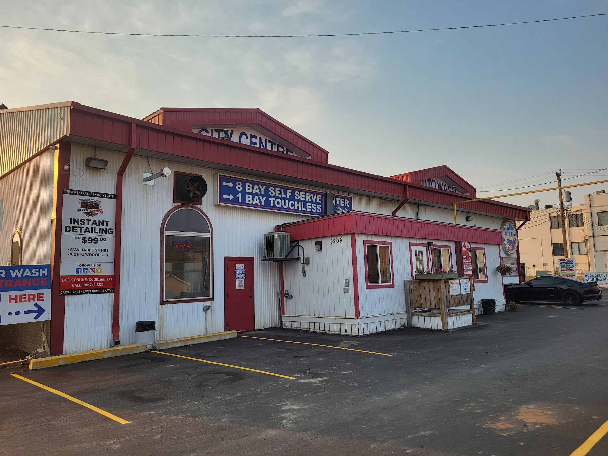 City Centre Auto Wash & Detail Express is a full-service car wash offering self-serve and automatic options, detailing, and outdoor quad, bike and boat wash, plus an indoor pet wash. It features 8 extra-large self-serve bays with 12-option wash and steam cleaning vacuums, described as well-lit, clean and easy to use. The drive-through automatic wash uses multi-coloured soap and warm reverse-osmosis filtered water and remains open to -35 degrees. Professional overnight detailing is available at great rates. Many customers call it the best car wash, noting everything works great and is clean, making it their go-to place. The service receives praise, with staff noted for extra helping effort. While some feel the rates are a bit expensive, others find it not expensive and normally a great wash. There have been occasional issues, such as the auto wash cutting out early or a maintenance concern with equipment, but management is acknowledged for making things right. The facility can be a tight squeeze for large trucks.