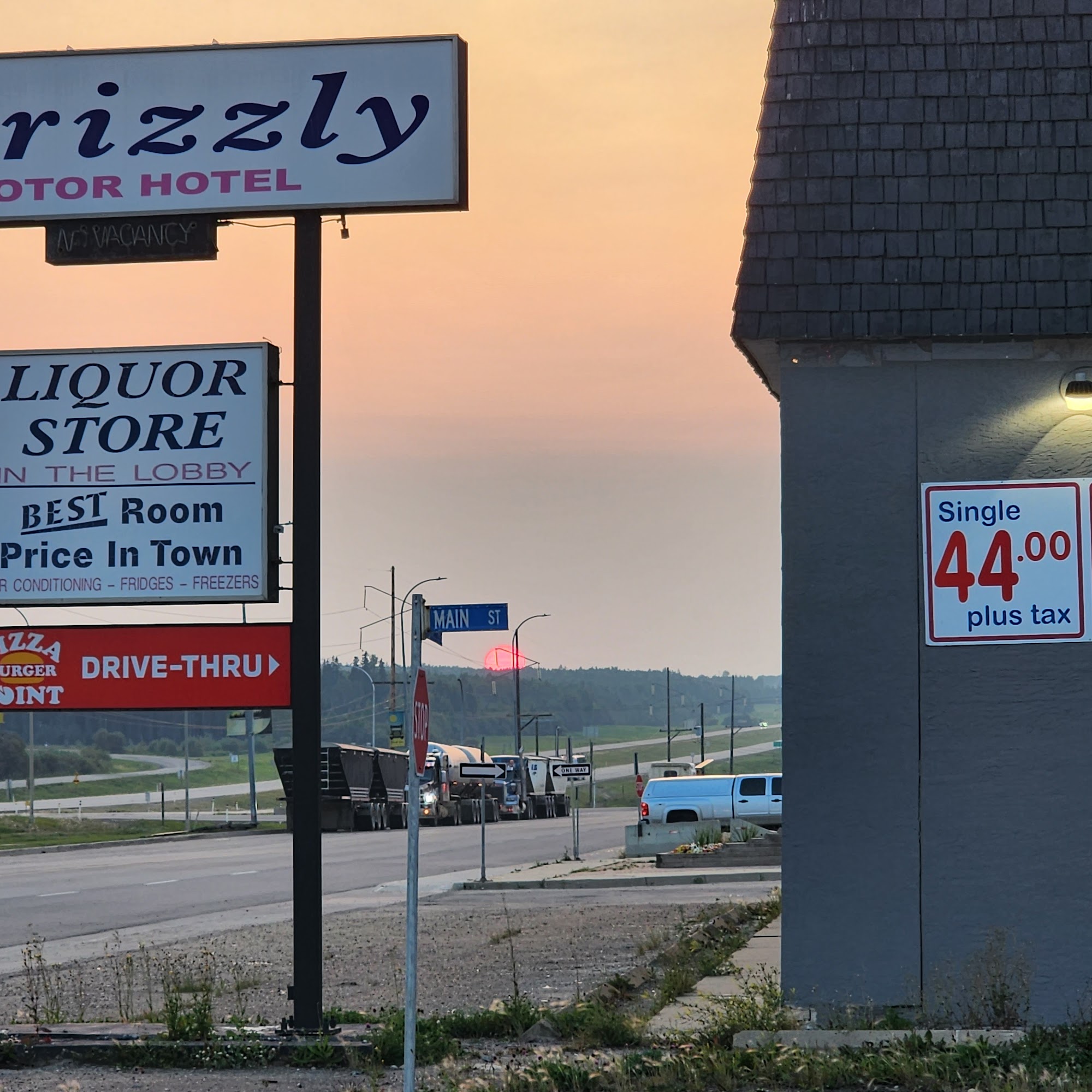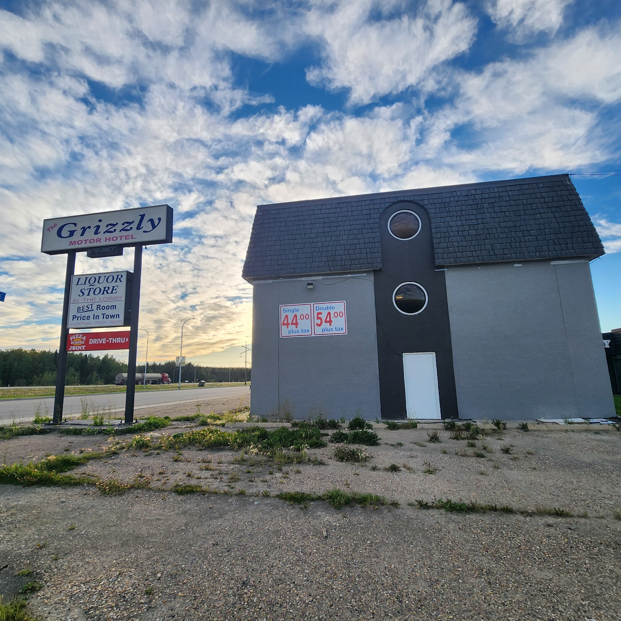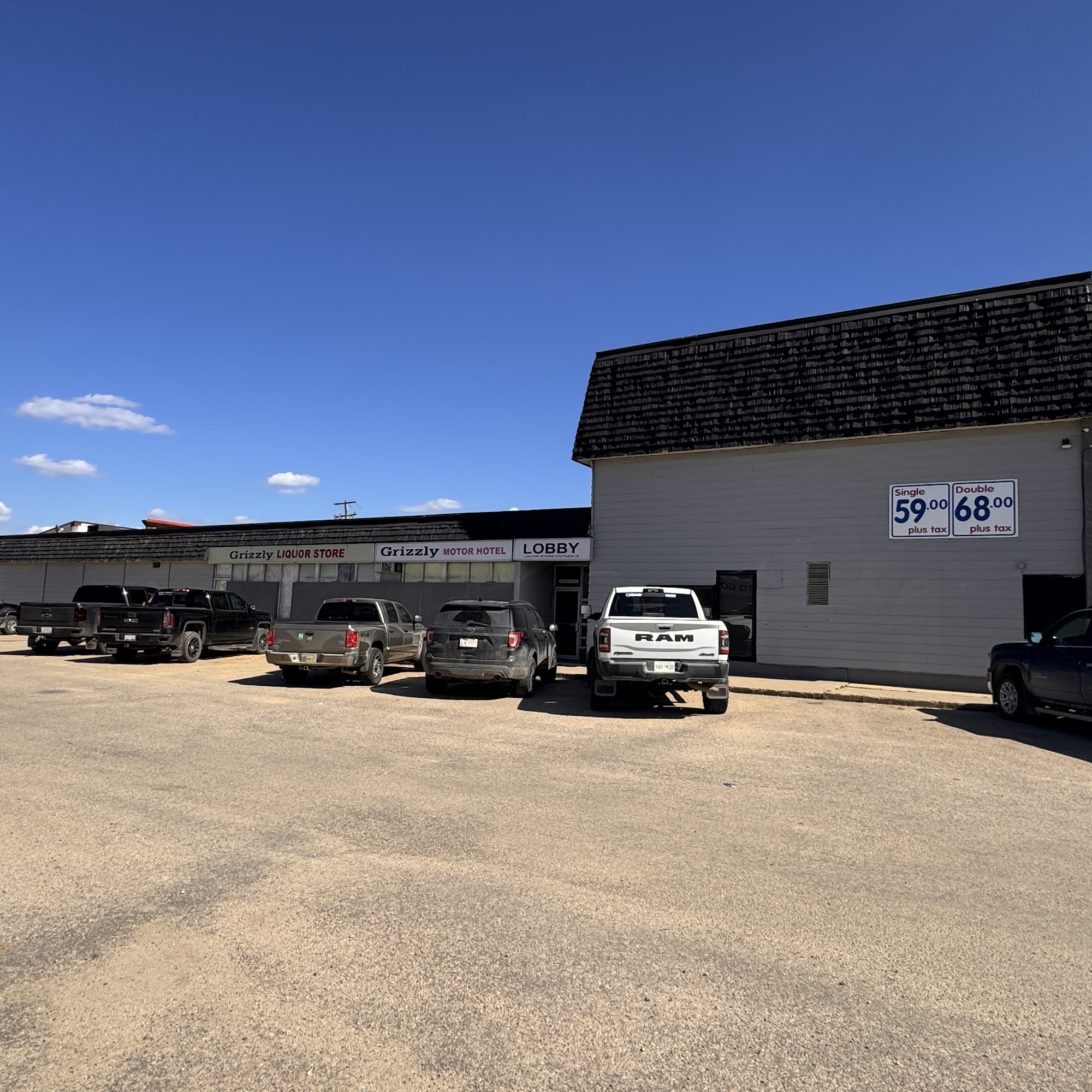 The Grizzly Motor Hotel offers great value and inexpensive rooms, considered the cheapest in town. Reviews note it is much better, cleaner, and more organized following a recent change. The rooms are good, decent, clean, and comfortable for the price, though the building is older and some lighting or blankets may need attention. The staff is very friendly, with quick and easy check-in. The hotel provides a relaxing atmosphere with a bar, liquor store, and pool table on site. A major convenience is a grocery store directly across the parking lot, along with nearby restaurants. While there is no kitchen, a microwave is available. Guests also appreciate the plentiful parking. Many express satisfaction and plan to return.