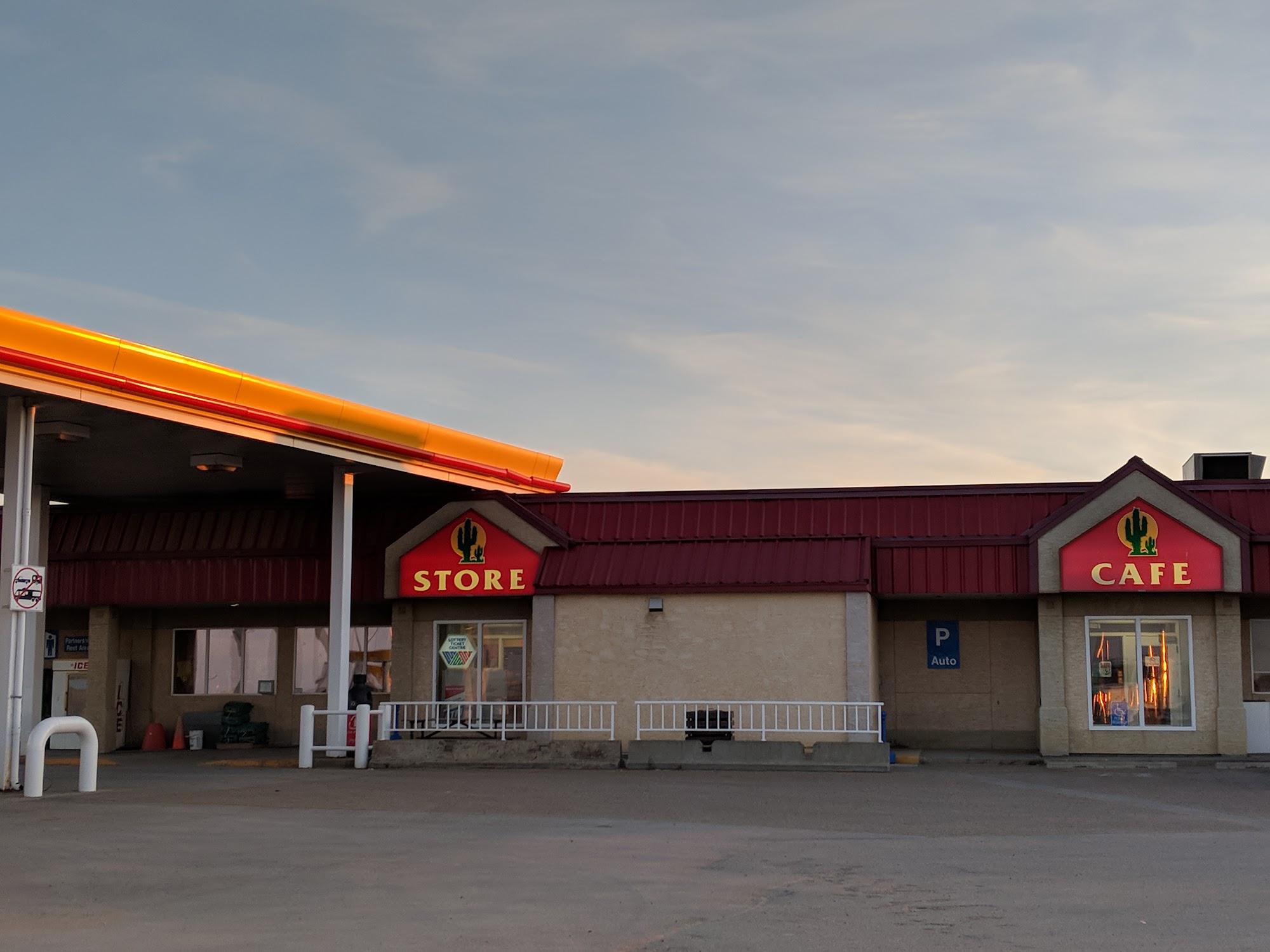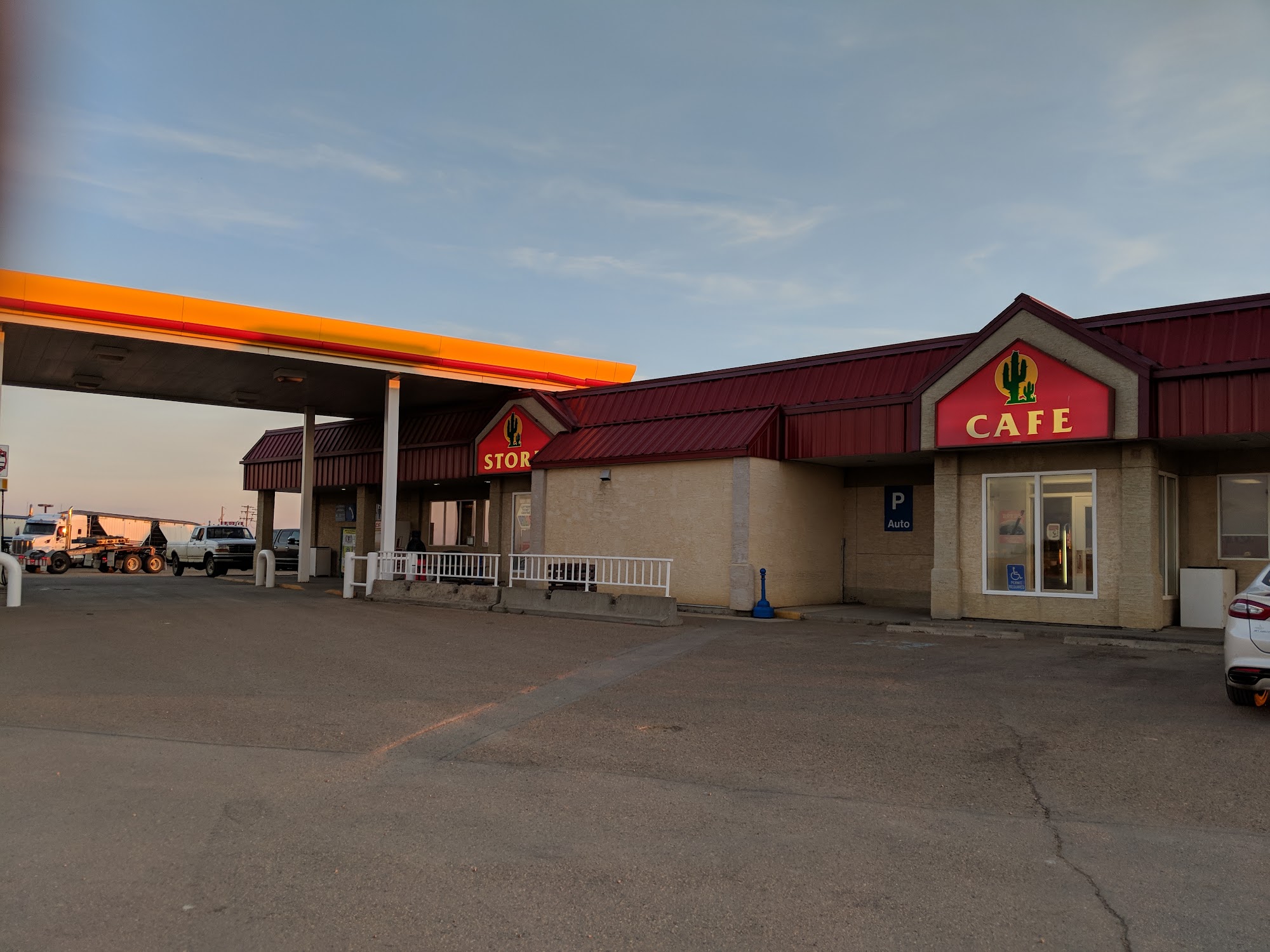 Cactus Corner Travel Centre is a convenient and reliable stop for travelers and truckers alike. Located right off the highway, it offers spacious parking and easy access, making it ideal for fueling up, resting, and grabbing a bite. The facility is always clean and well-maintained, with friendly and helpful staff who provide quick service. Travelers can enjoy a variety of amenities including fueling stations, dining options with hearty and diner-style comfort food, snacks, drinks, and essentials for the road. The restaurant features a casual, welcoming atmosphere with generous portions and reasonable prices, perfect for a satisfying meal during a journey. The washrooms are kept in great condition, and there are showers available for those needing to refresh. Additional conveniences include a car and truck wash, a mobile mechanical shop, and a gift shop across the parking lot. The overall experience is positive, owing to the clean environment, friendly service, and affordability. Whether stopping for fuel, a meal, or a quick rest, Cactus Corner Travel Centre provides everything needed to refuel both vehicle and spirit, making it a highly recommended stop along the route.