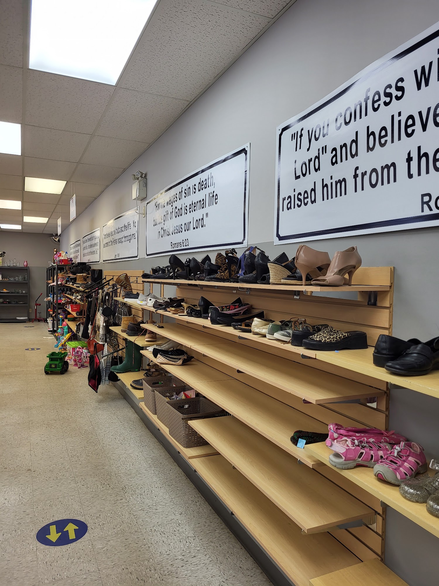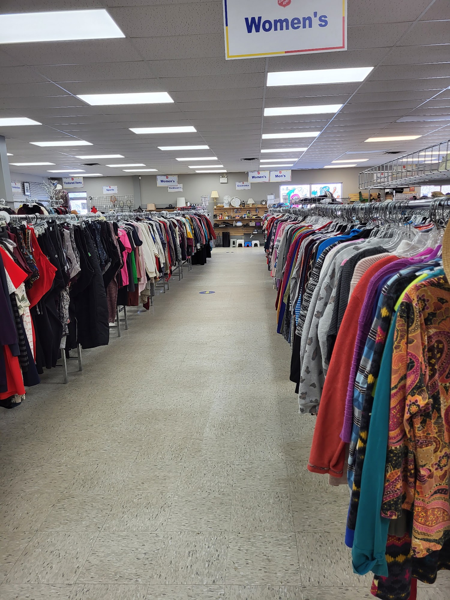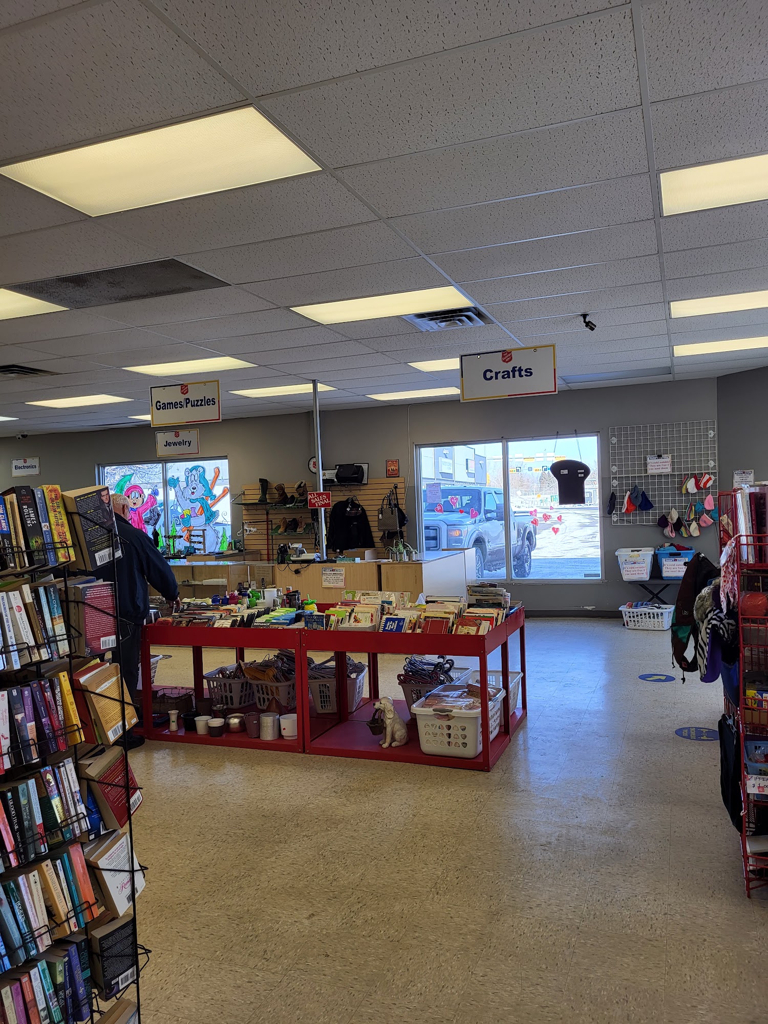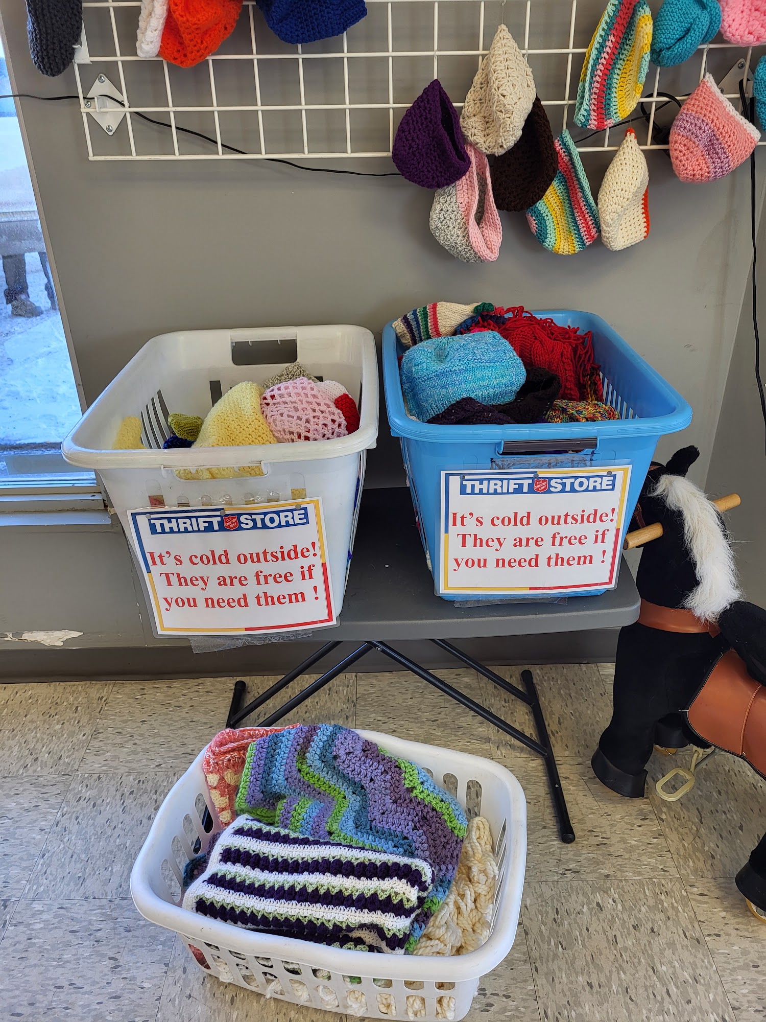 Large area, lots of clothes. They give free toques to anyone that needs one.