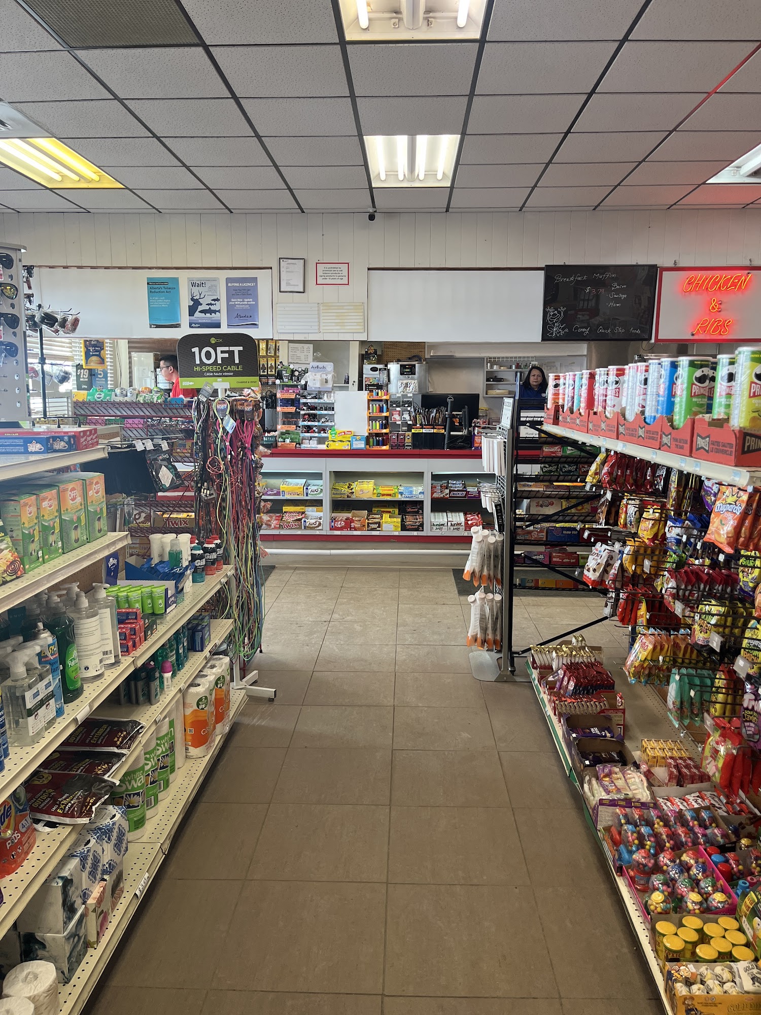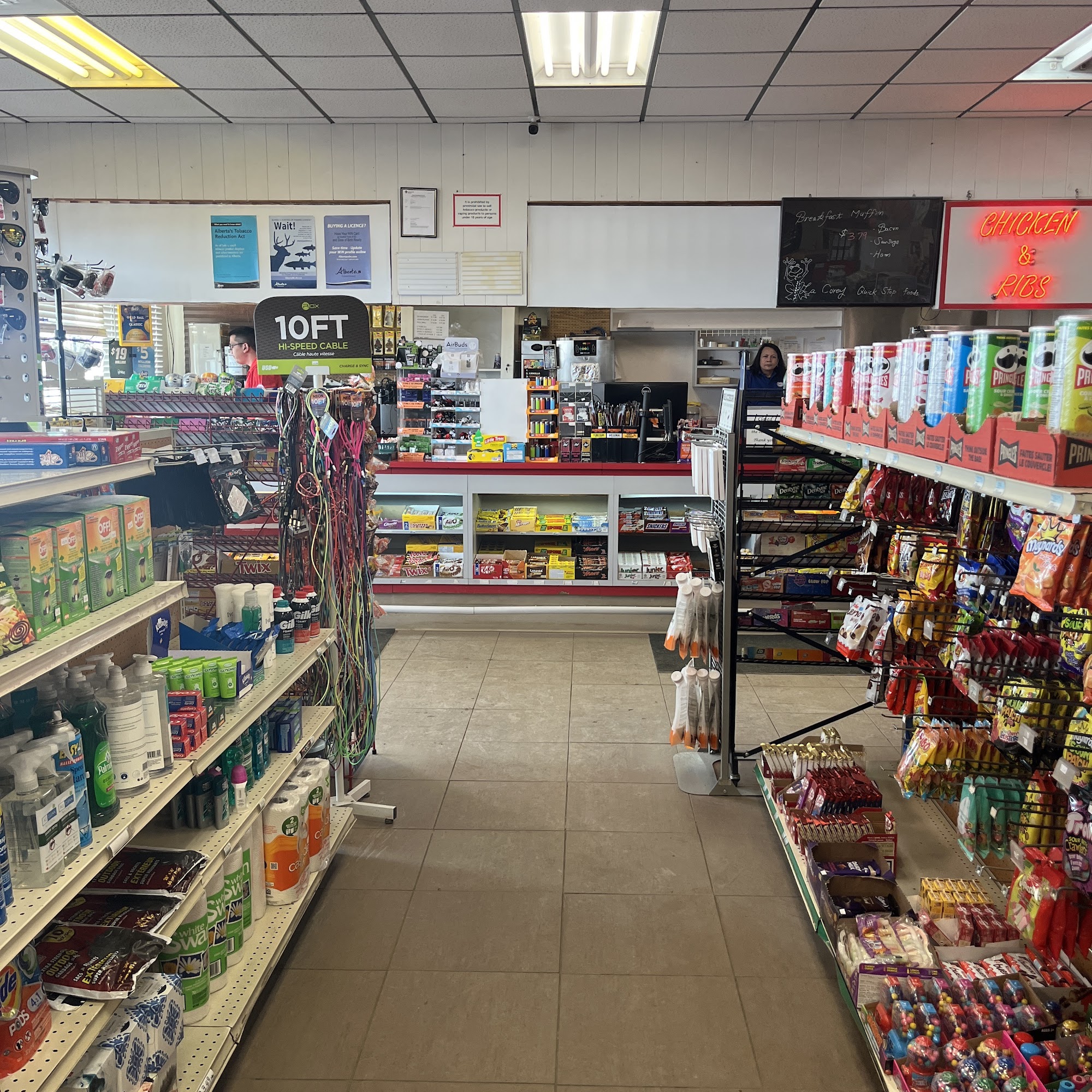 Pretty decent highway pit-stop in La Corey. Gas prices are generally a couple cents more than in Bonnyville, but nothing substantial. Bathroom is ok, nothing fancy. Lots of snack/food options which is nice.