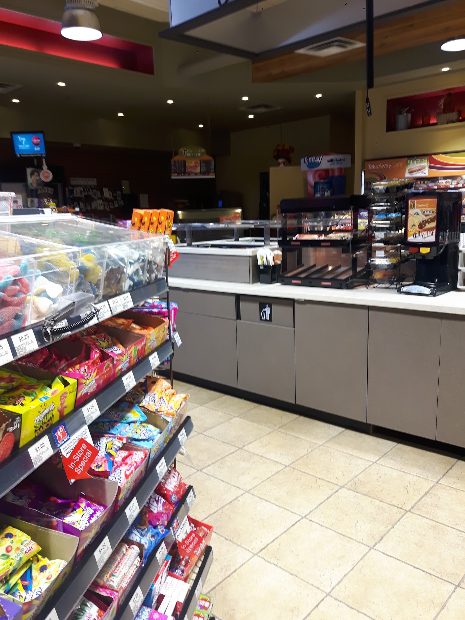 Okay place to get a few snacks like chocolate bars, candy, and slushies