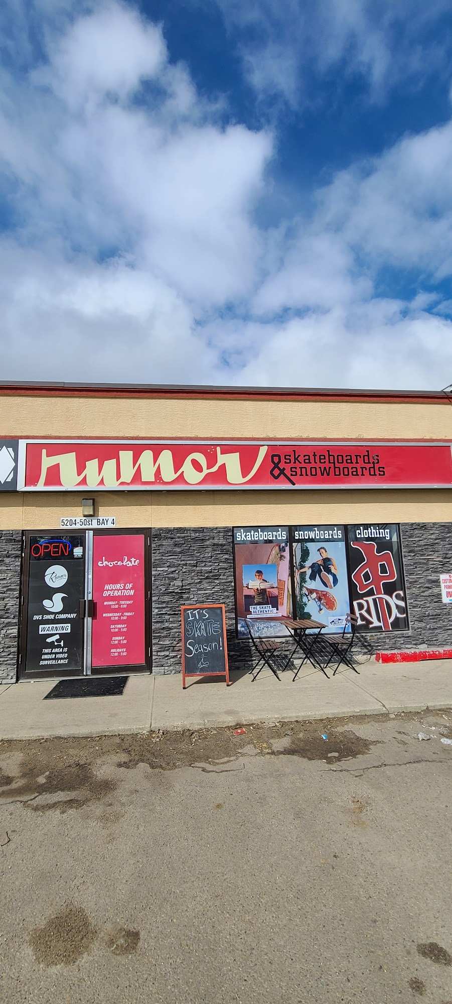 Rumor Skateboards & Snowboards is a locally owned and operated business in Leduc, Alberta, known for its exceptional selection of snowboards, snowboard equipment, and a wide range of men's and women's shoes. The store carries top brands like Capita Snowboards, Rome Snowboards, Union bindings, Vans, DC, Gnu, Roxy, Salomon, Jones, Nitro, and more. Customers praise the store's knowledgeable and friendly staff, who go above and beyond to assist shoppers, whether they are seasoned snowboarders or beginners. The store is also praised for its helpful customer service, with one customer noting that the staff set up a beginner child with interest and care. Rumor Skateboards & Snowboards is a go-to destination for locals, offering a convenient and enjoyable shopping experience. The store is known for its frequent sales and promotions, making it a popular choice for those seeking quality gear at affordable prices.
