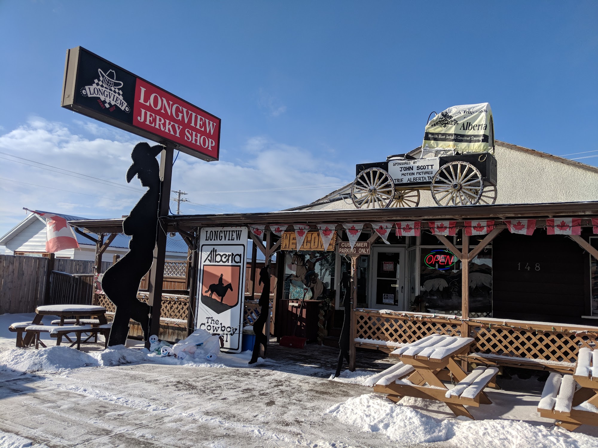 Longview Jerky Shop, located in the heart of Longview, Alberta, has been serving up delicious jerky since 1978. Known for its extensive selection of over 30 varieties, customers can enjoy classic flavors made in the famous Longview style, including beef, elk, bison, venison, pork, chicken, and turkey. The shop offers a rustic, old-west atmosphere that enhances the experience of shopping for snacks. Reviewers appreciate the variety of flavors available, including unique options like honey garlic and mandarin ginger. While some found certain batches of jerky to be a bit dry, the overall quality and taste are highly praised. The shop is also recognized for its commitment to the local community, regularly supporting and giving back to the people around them. With excellent customer service and a welcoming environment, Longview Jerky Shop is a must-visit destination for jerky lovers. Open more often than expected, it's an iconic snack stop that truly embodies the spirit of rural Alberta.