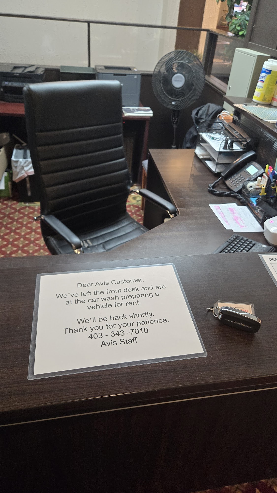 Amazing experience. Customer rep was professional courteous and fast. Noticed some minor damage to a trunk fastener on the interior and she changed the damage slip on the fly. Got me to the airport on time and safely. Thanks Avis Red Deer!!!