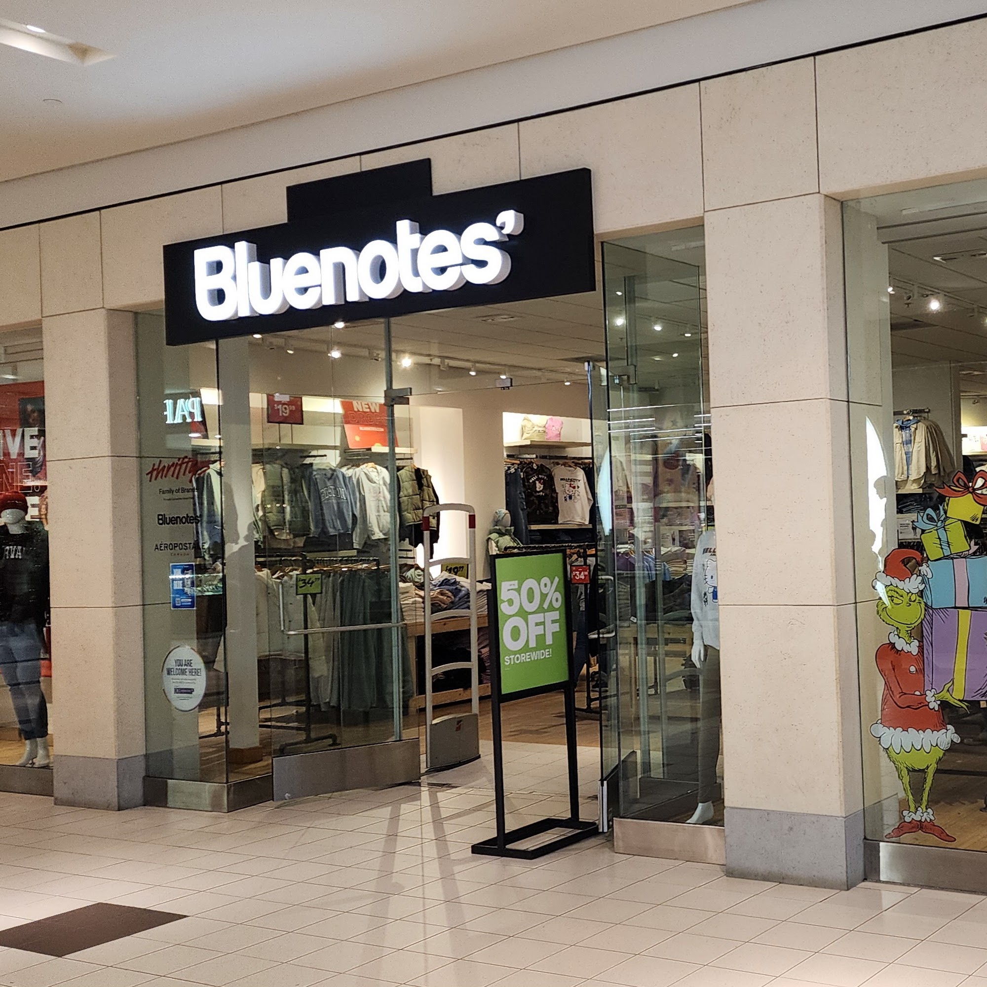 Bluenotes is a Canadian denim retailer that has been in business since 1942, known for its affordable and trendy clothing. The store offers a variety of items, including jeans, hoodies, jackets, and graphic t-shirts, and features an exclusive collaboration with Aéropostale in Canada. Customers appreciate the friendly and helpful staff, with particular praise for a team member who provided excellent assistance. Shoppers often mention the great deals available and the welcoming atmosphere created by the smiling employees. While some note that the store could be brighter, it remains a popular destination for those seeking stylish outfits at reasonable prices. With over 90 locations and online shopping options, Bluenotes continues to attract a loyal customer base.