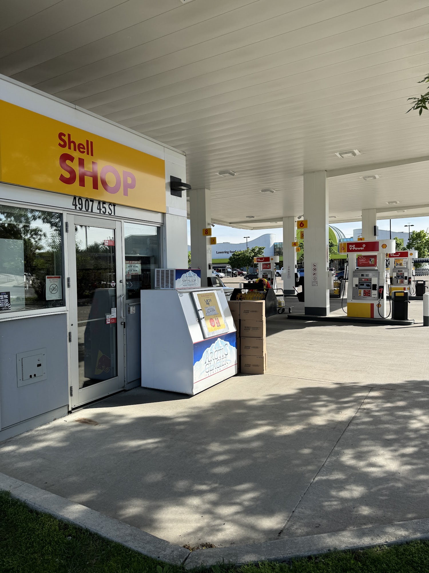 Convenient location. Shell App is a great way to pay at the pump. AMA= .3 cents off & collect Air Miles. Usually have snack & drink specials.