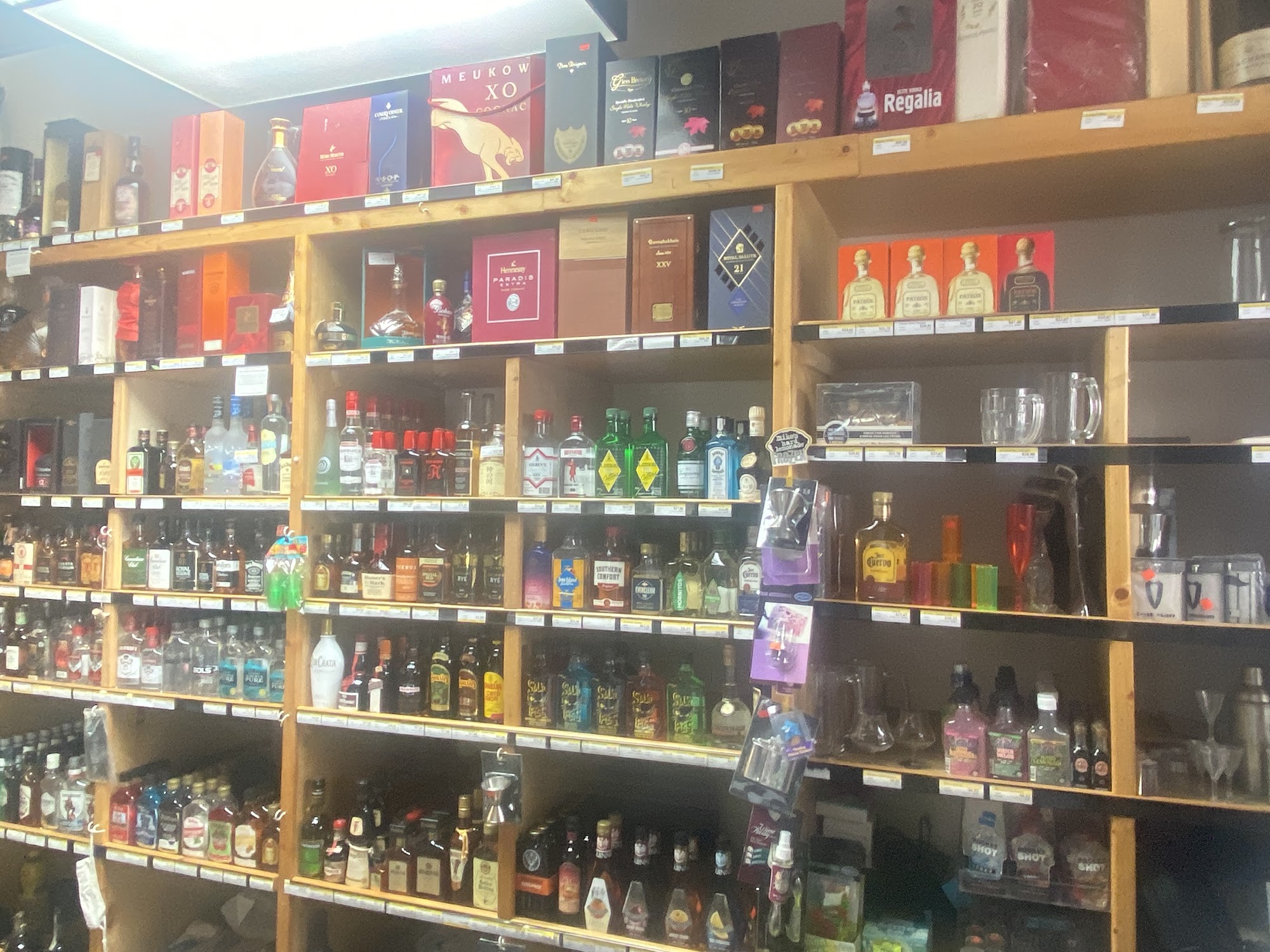 Although the staff are friendly the stock selection is low or not in stock. The cooler also has supplies stored and the liquor on the floor as well as disorganized.