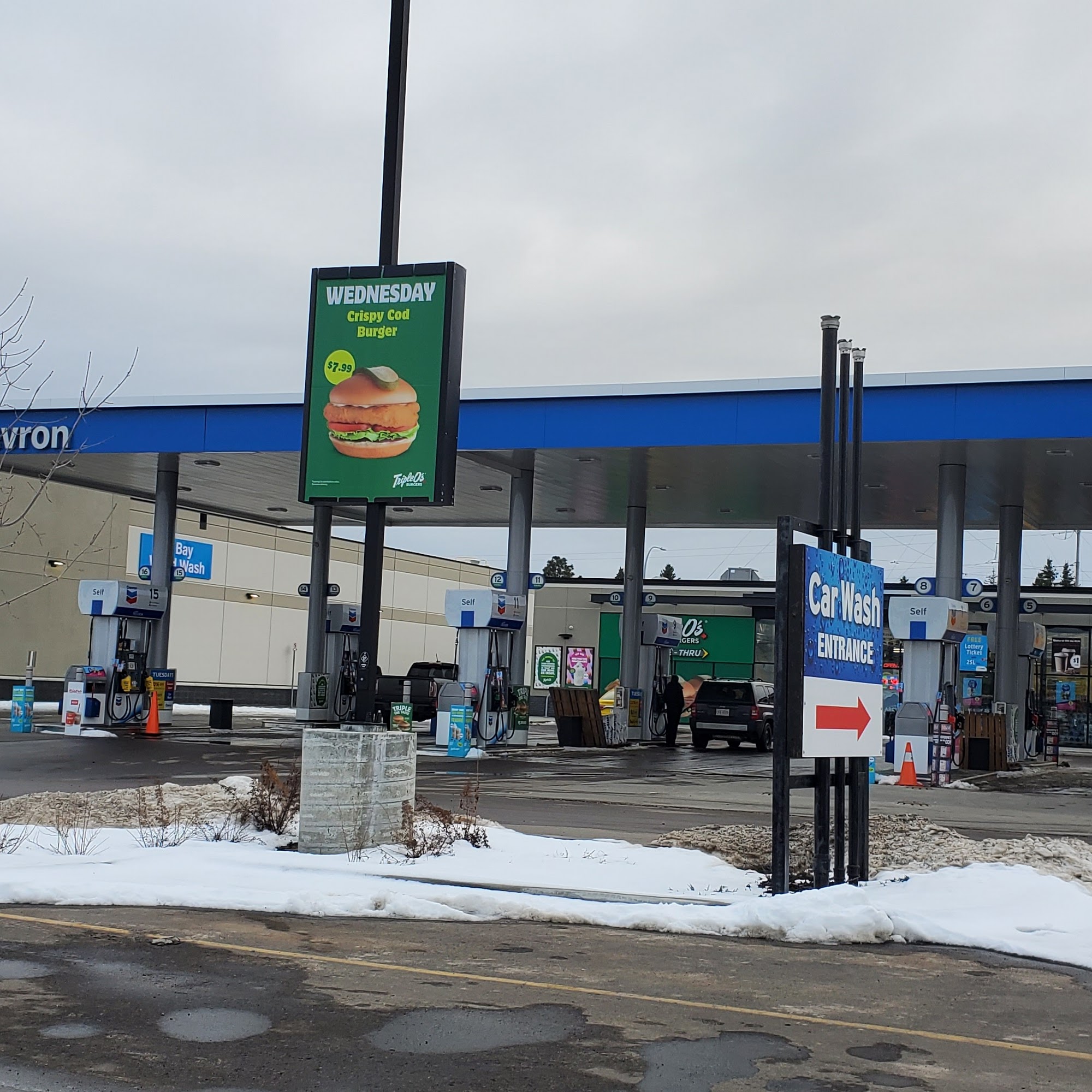 Campbell Park Chevron is a convenient and well-maintained location offering a variety of services. The car wash is highly regarded for being clean, efficient, and affordable at just a dollar a minute, with electronic payment options available. Many customers appreciate how friendly and helpful the staff are, consistently providing a positive experience. The facilities, including the washrooms, are kept clean and uncluttered, though some find the hand dryer in the bathroom frustrating due to its design. The gas station is a popular stop for fuel, lotto, snacks, and convenience store items, including a newly added burger shop. The store features a good selection of snacks, soft drinks, and small items like coloring books and surprise bags, making it a good spot for quick purchases or road trips. Many customers enjoy the location’s overall cleanliness and friendly service, noting the staff’s efforts in keeping the store and pumps clean and well-stocked, and outside staff refilling windshield wash buckets regularly. While the gas prices are sometimes about 10 cents higher than nearby stations, the overall convenience and friendly atmosphere make it a favorite stop for many. The addition of Triple O's burger shop further enhances the appeal of this location.