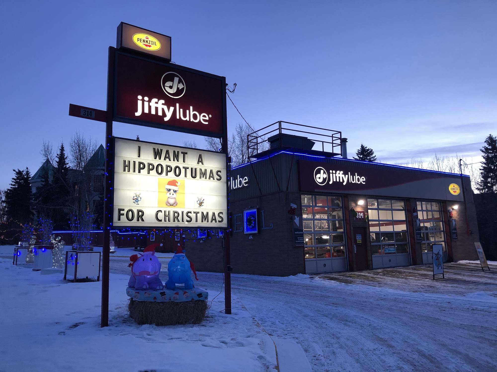 Jiffy Lube is an owner-operated business that has been serving customers since 1990, specializing in European vehicles and offering full diesel truck services. The location is known for its fast, fair, and friendly service, with video surveillance ensuring customer protection during all services. Staff members are described as friendly and efficient, often checking air filters and lights in addition to oil changes. Customers appreciate the quick service and good prices, making Jiffy Lube their go-to for oil changes. The festive decorations and humorous signs outside create a welcoming atmosphere, drawing in passersby. Notably, staff members like Cory and Tevin have received praise for their professionalism and helpfulness, enhancing the overall customer experience. Jiffy Lube goes above and beyond, even reviewing video footage for customers to ensure service accuracy, making it a wholesome and dependable choice for vehicle maintenance.