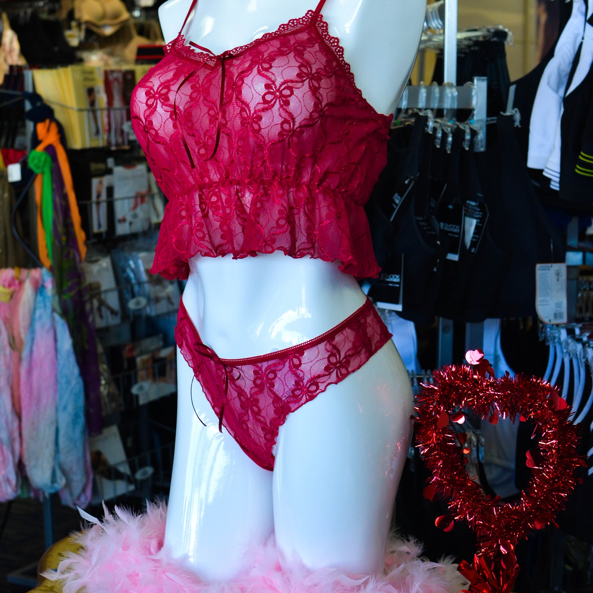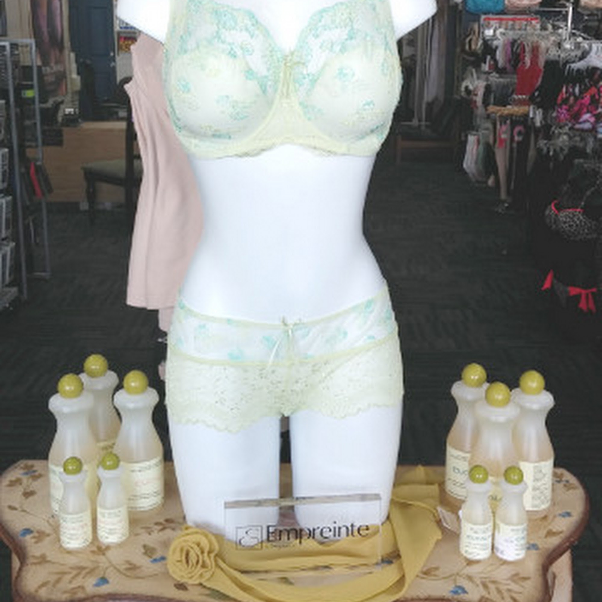 We specialize in professional bra fittings for bras ranging from AA to O cups. We have a large selection of bras that we professionally fit from t-shirt, soft cup, strapless, wireless, push-up, nursing, sports, mastectomy, minimizing, full coverage, and many more. We carry other items such as panties, (Janira, Hanky Panky, etc, cup-sized swim wear, shapewear, lingerie (corsets, bustiers, babydolls, etc), Wicking sleepwear & regular, robes, mens Saxx underwear, camisoles, bridal lingerie, lingerie washing powders and liquids, bra accessories like adhesives and tape, and adult accessories.