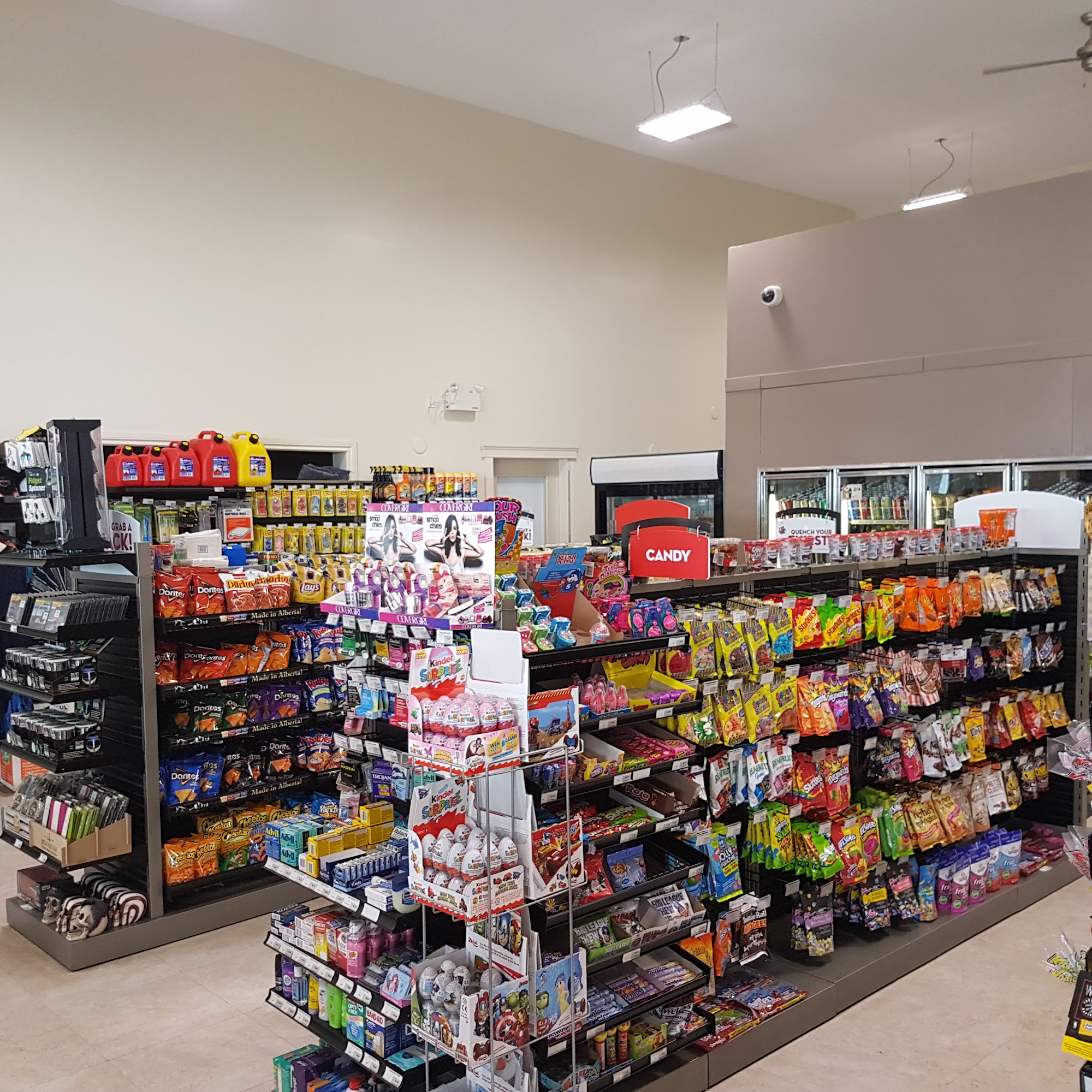 They have some nic naks and snack items. but everything is crazy overpriced. I don't care what the excuses is, but to buy 2 beverages and a mediocre sandwich should cost $20 unless it's in the middle of nowhere. But spending time around Stettler the last few days seems there's plenty of places with jacked up prices.