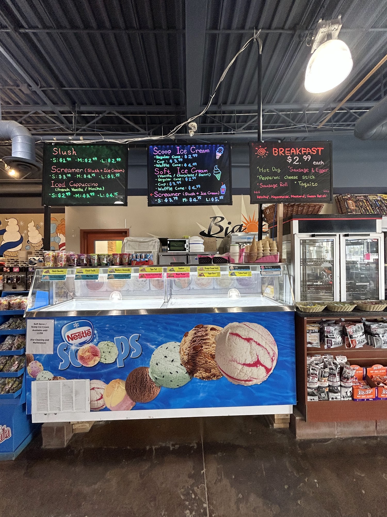 They have a great selection of everything! A soft serve ice cream machine in the summer months, as well as hard ice cream. Would recommend to everyone to hit up place!