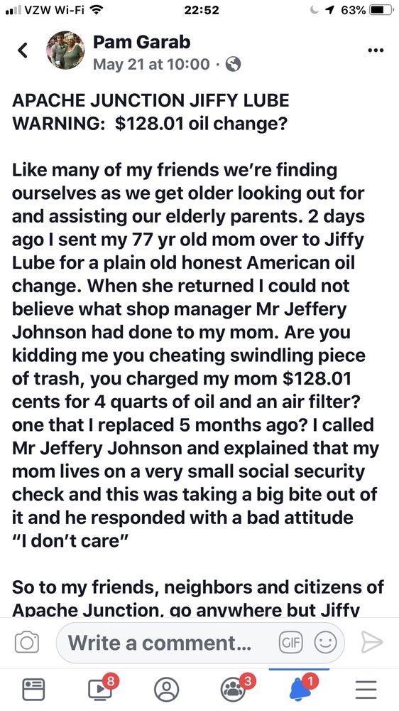 Jiffy Lube in Apache Junction, AZ, is known for providing quick and reliable automotive maintenance services. Customers can get oil changes, windshield wipers, filter replacements, tire rotations, and fleet services without an appointment. The trained technicians are efficient, polite, and helpful, taking the time to troubleshoot issues and fix problems, such as strange cabin filter sounds. Staff members are organized, confident, and honest, often offering helpful recommendations for additional repairs without pushing sales. Customers appreciate the fast service and the thorough vehicle inspections performed at no extra cost, ensuring vehicles are well-maintained. While some reviews mention minor distractions in customer service, overall, the staff is friendly and responsive. Many customers leave satisfied with their experience and plan to return, highlighting Jiffy Lube’s reputation for industry-leading car maintenance and excellent service in the Apache Junction community.