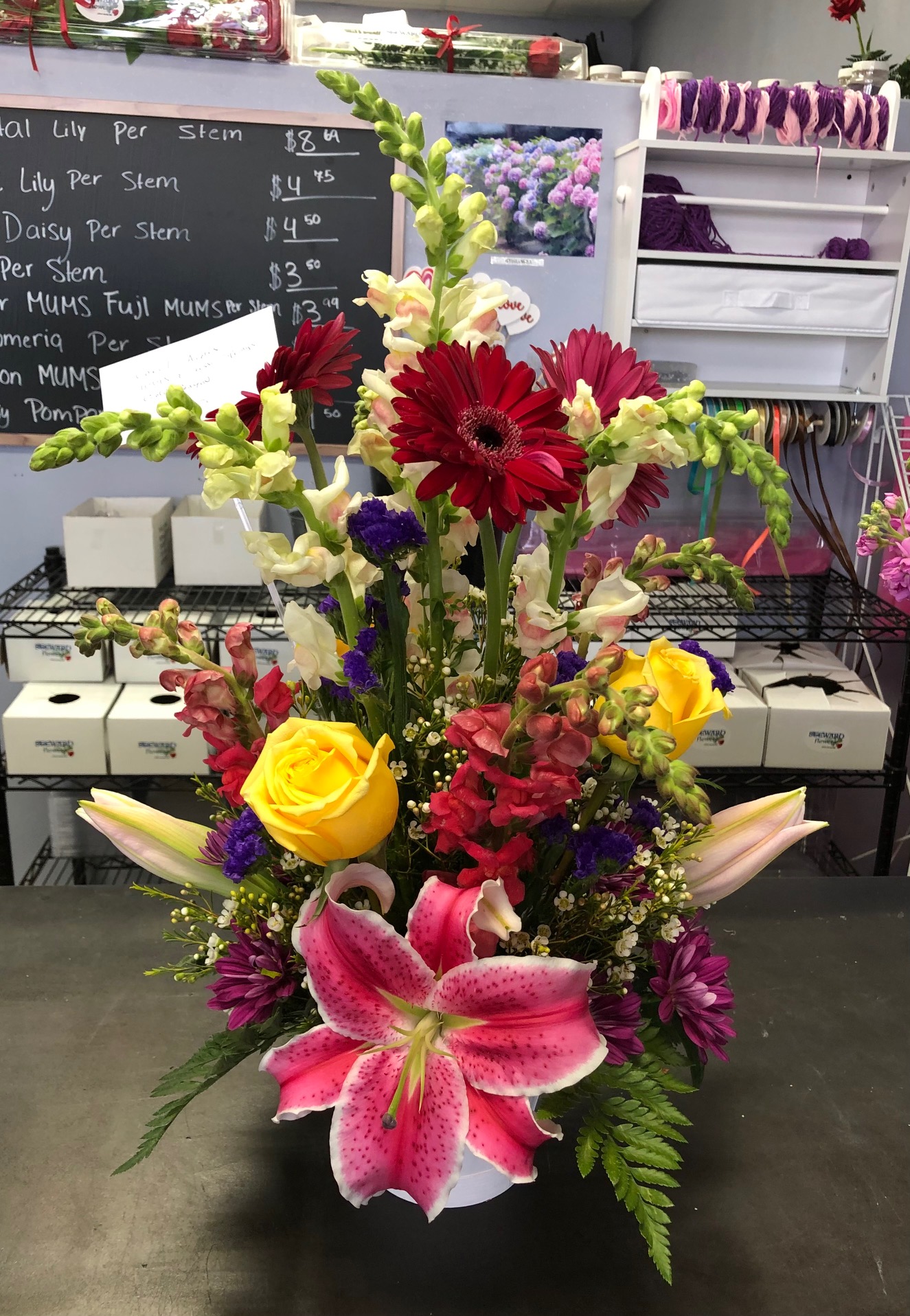 We stopped in for a bouquet of flowers thos afternoon, spur of the moment. They gladly helped us, created a beautiful arrangement, in a short amount of time. They even took it to our car. Will definitely shop here again! Nice to have a local florist.