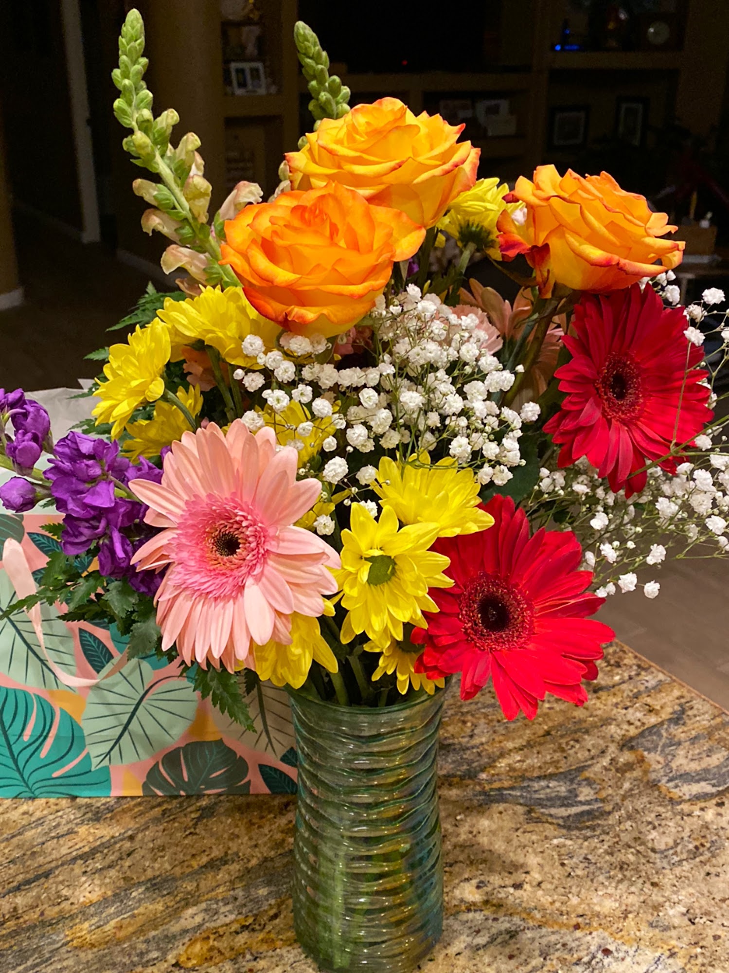 I called needing flowers delivered the same day for a death in the family. I was told that if a late day delivery was ok it was possible. My family member said it was the most beautiful bouquet the have ever received. Thank you for taking care of my needs during a difficult time.
