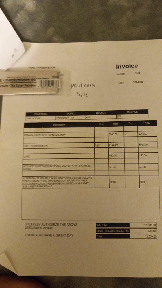 Trail Transmission went above and beyond to fix my transmission wiring problem. The wire harness I needed was no longer made, but their expert technician was able to build a wiring harness custom to my car. I highly recommend this company.