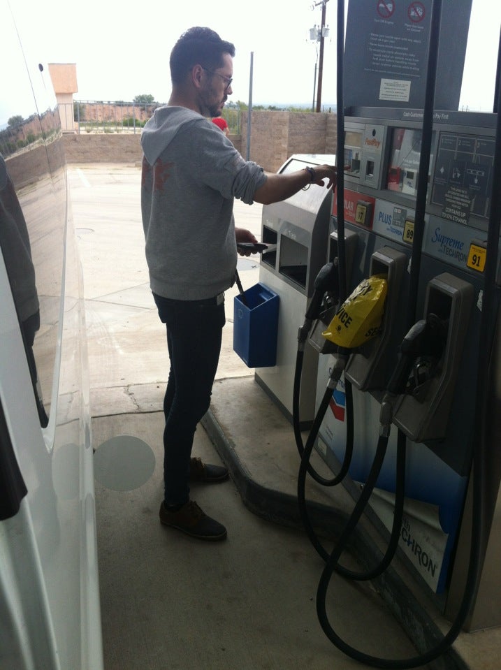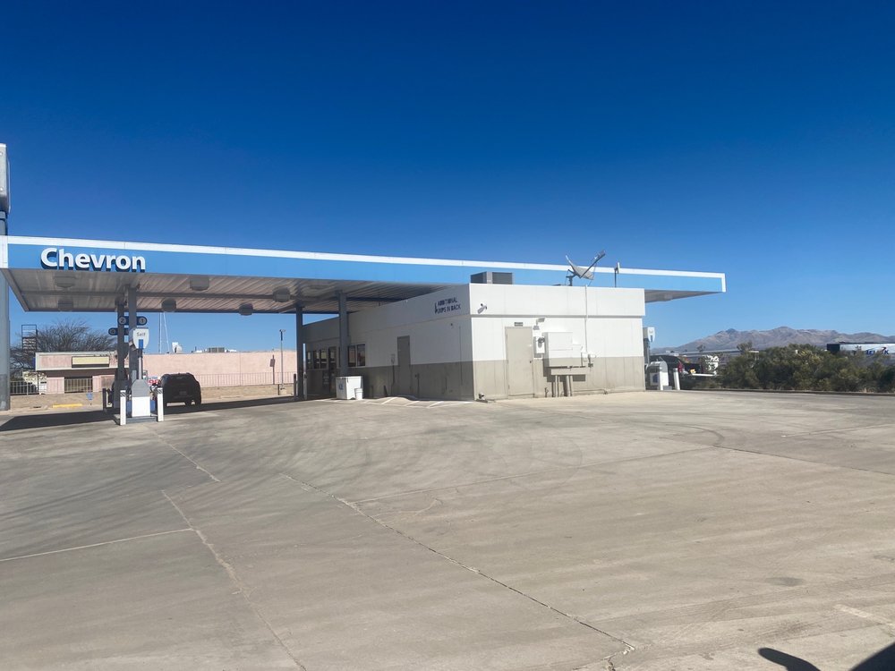 I pulled into this chevron after a long drive, to get gas and hoping they had a restroom. The cashier was very nice and welcoming. I would recommend you try the chocolate chip cookies made by prairrie, they have on the front counter, they are DeLICious! But sadly their air/water machine wasn't working :(