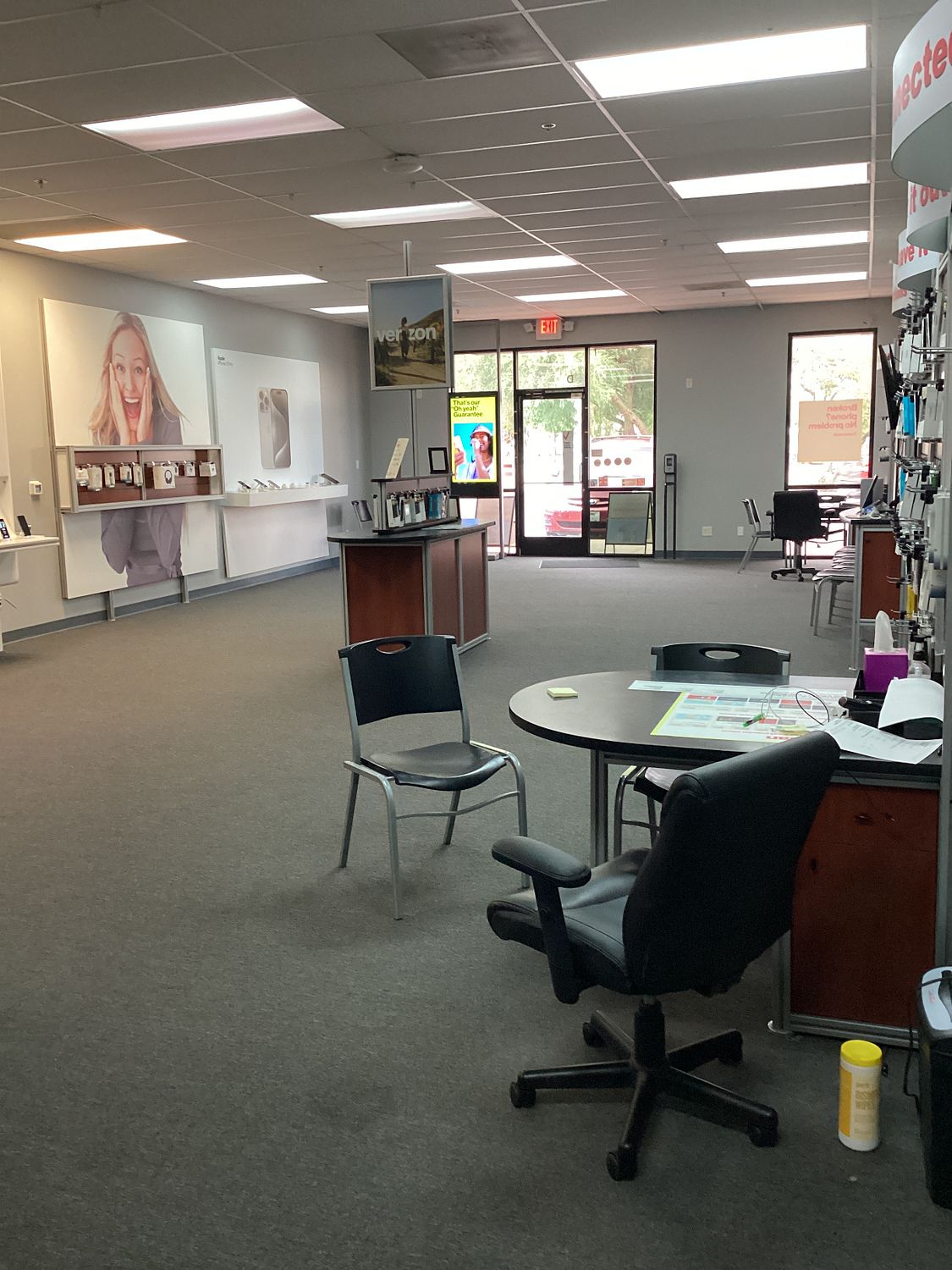 No other customers in the business. No displays at all. Was told it's slow in Sunday's so no need for displays. Only two phones fit our profile. Had to.order phone. Was told two days, took three. Just tired of the lack of customer service in the service industry.