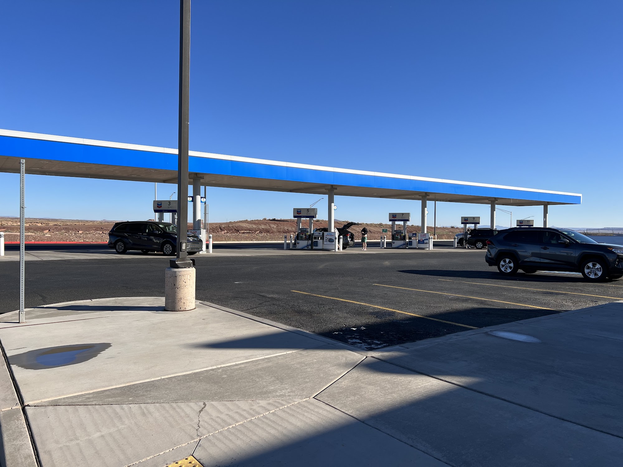 The fuel was actually cheaper here as compared to Sedona and Paige. Restroom were clean, located inside Navajo trails building.