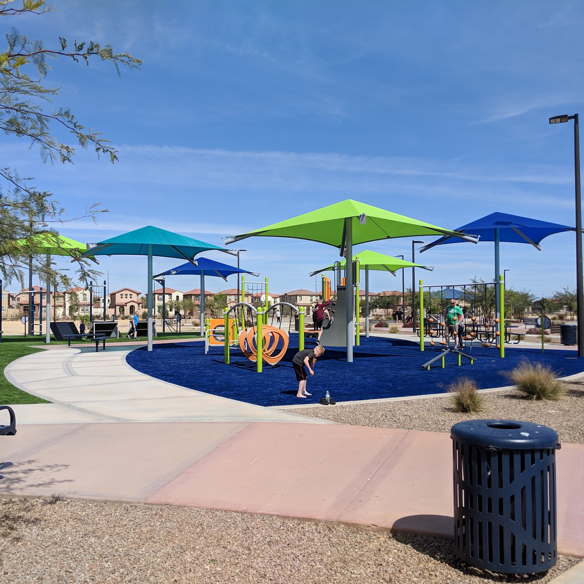 Real hidden gem in a southeast Gilbert neighborhood. Colored fountain, two story gazebo with lights, playgrounds, pool, picnic area. Great place for journal or scrapbook memory pictures. The rising harvest moon was a real cherry on top. What a night! I recommend.