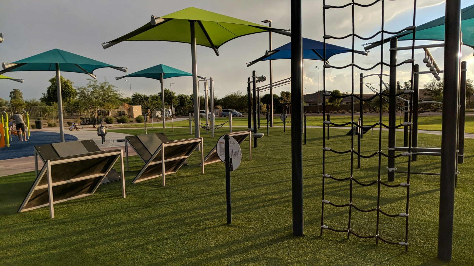 Awesome ninja park to keep kids busy and a clean park for volleyball, basketball, biking and walking
