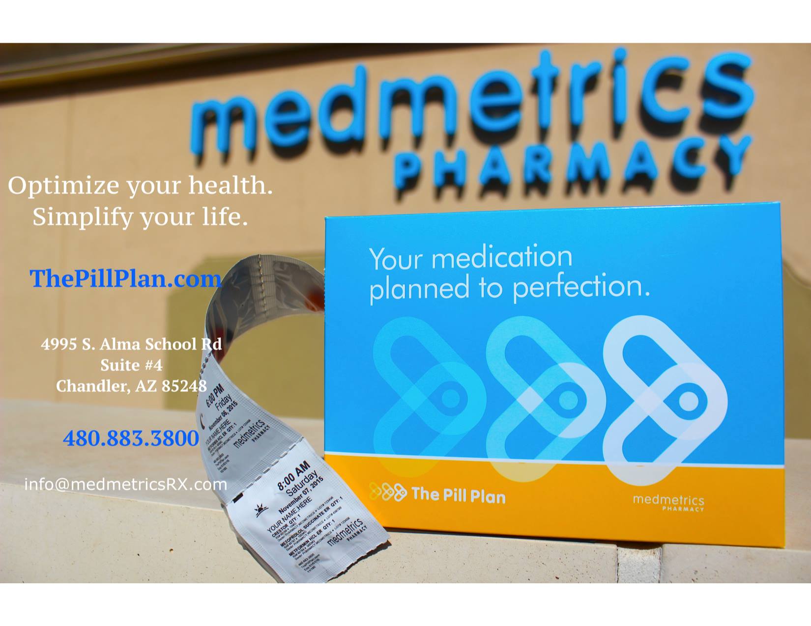 Medmetrics Compounding Pharmacy is a locally owned neighborhood pharmacy in Chandler, Arizona, offering free delivery anywhere in the state. It provides traditional prescription services and specializes in compounding bio-identical hormones, dermatology products, and veterinary medications. Reviews consistently highlight an amazing and great experience with very friendly, helpful, and knowledgeable staff. Customers report great communication that is upfront with no hidden details, making them feel comfortable. The pharmacy goes above and beyond, such as helping replace a lost order and providing ice packs for refrigerated medicines. They process compounds through prescription insurance and offer discounts for multi-month purchases. One customer has reliably used them for five years for consistent pet medications, keeping their animal happy and healthy. It is easy to speak to a helpful human during business hours. Medmetrics is described as a pharmacy that really cares.