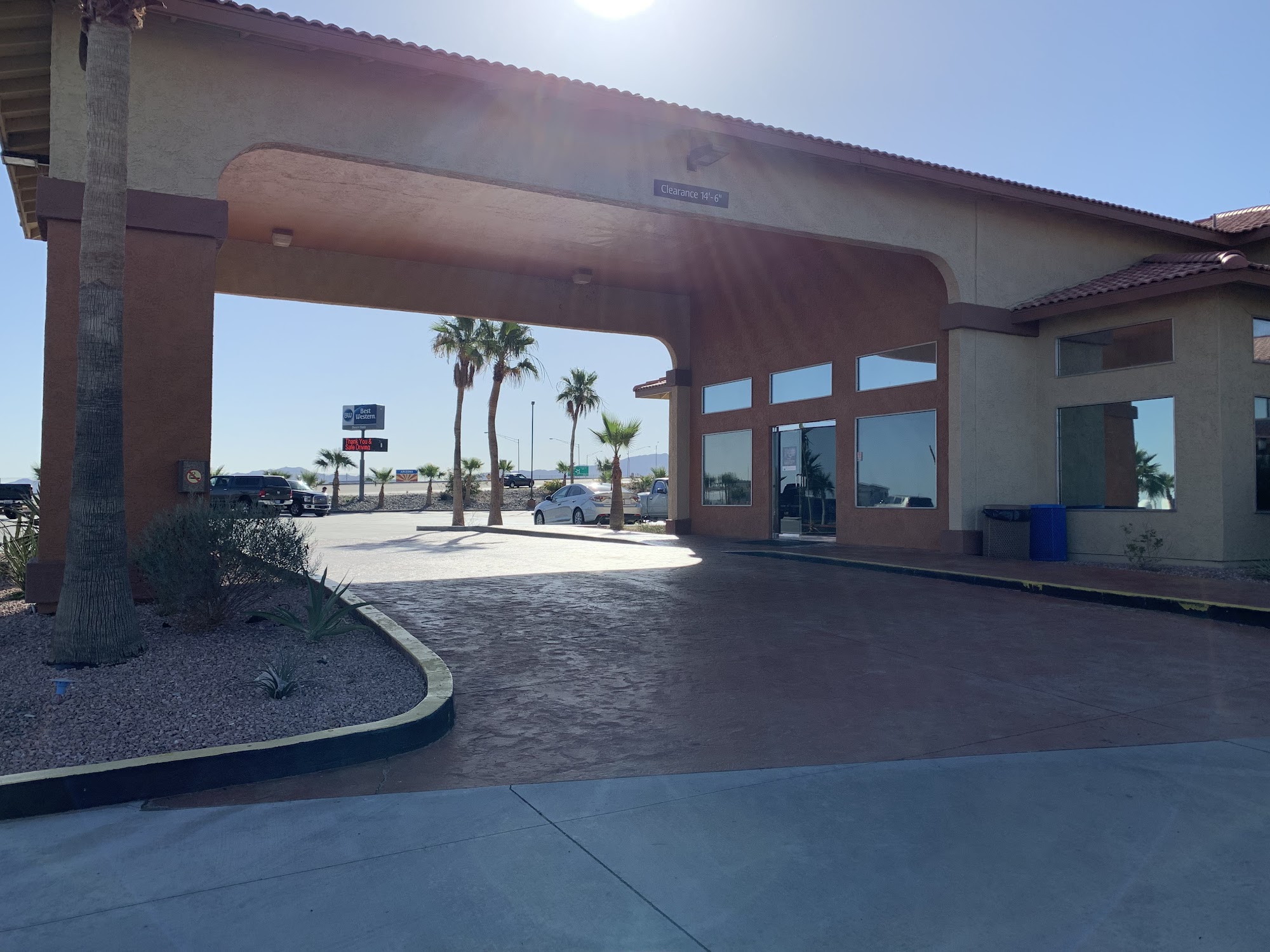 Best Western Desert Oasis is a clean, friendly, and comfortable place for a road trip stop. It serves as a good halfway point between LA and Phoenix. The rooms are clean, though some carpets are ready to be replaced and rooms lack USB outlets. The free breakfast is great and has everything, including sausage, eggs, biscuits, waffles, and fresh yogurt. While some front desk staff are excellent, knowledgeable, professional, and kind, a lack of communication and care from the front desk has been a disappointment for others. It is much less run down than other options in the area, though some find it expensive.