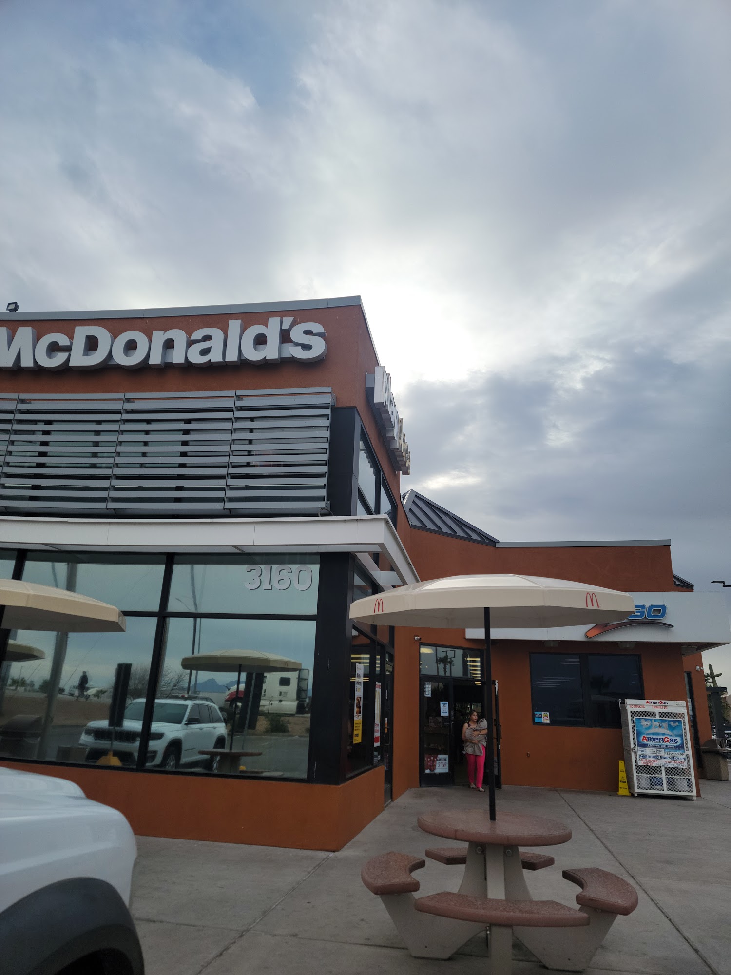 Perfectly serviceable restrooms located in the attached McDonalds. The employee did not appear to have the vigor of life in her but who can blame her? Beware the large pool of standing water in the parking lot if it has recently rained. That could ruin your morning!