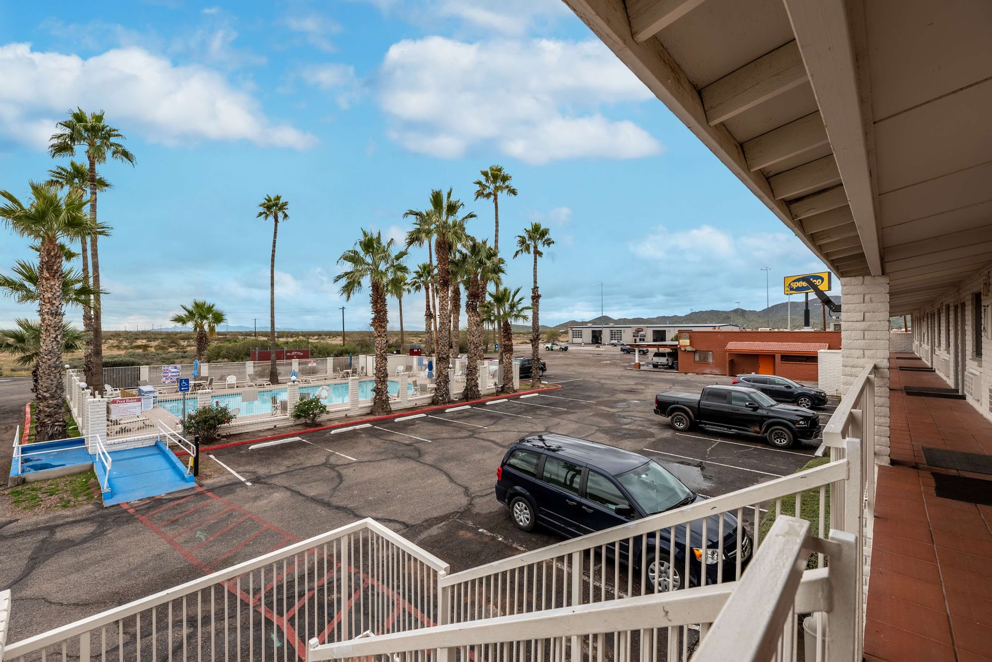 Motel 6 Eloy, AZ - Casa Grande offers a practical and comfortable stay for travelers, especially drivers. With affordable rates around $60, guests enjoy amenities like cold air conditioning, hot showers, and clean sheets in well-maintained rooms. The motel features plenty of truck parking and is conveniently located near gas stations and restaurants. While some rooms may be dated, they remain comfortable and clean, with new mattresses reported in recent stays. The front desk staff is consistently praised for their friendly service and quick check-in process. Guests appreciate the absence of high room deposits that are common in other hotels. The property is pet-friendly, monitored, and the parking lot is kept clean, contributing to a quiet atmosphere despite its proximity to a truck stop. Overall, Motel 6 Eloy provides a reliable and satisfactory lodging option for those working on the roads or passing through the area.