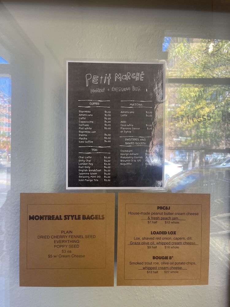 Petit Marché is a charming market, bakery, and coffee shop in the heart of Flagstaff. It offers a variety of fresh produce, pantry items, wine, baked goods, and espresso drinks. The bakery's pastries are highly praised, with favorites like the cherry fennel bagel and in-house-baked brownies. The coffee is excellent, with seasonal drinks and a selection of tasty espresso options. Visitors enjoy the delightful food, such as the Deli Turkey bagel with spinach and tomato, and refreshing herbal berry tea. The outdoor sidewalk seating creates a welcoming ambiance reminiscent of Paris cafes, with friendly staff always ready to help. Regular customers appreciate the quality of the pastries, the attentive service, and the inviting atmosphere. Overall, Petit Marché is a beloved spot for great food, drinks, and a cozy experience, making it a must-visit in Flagstaff.