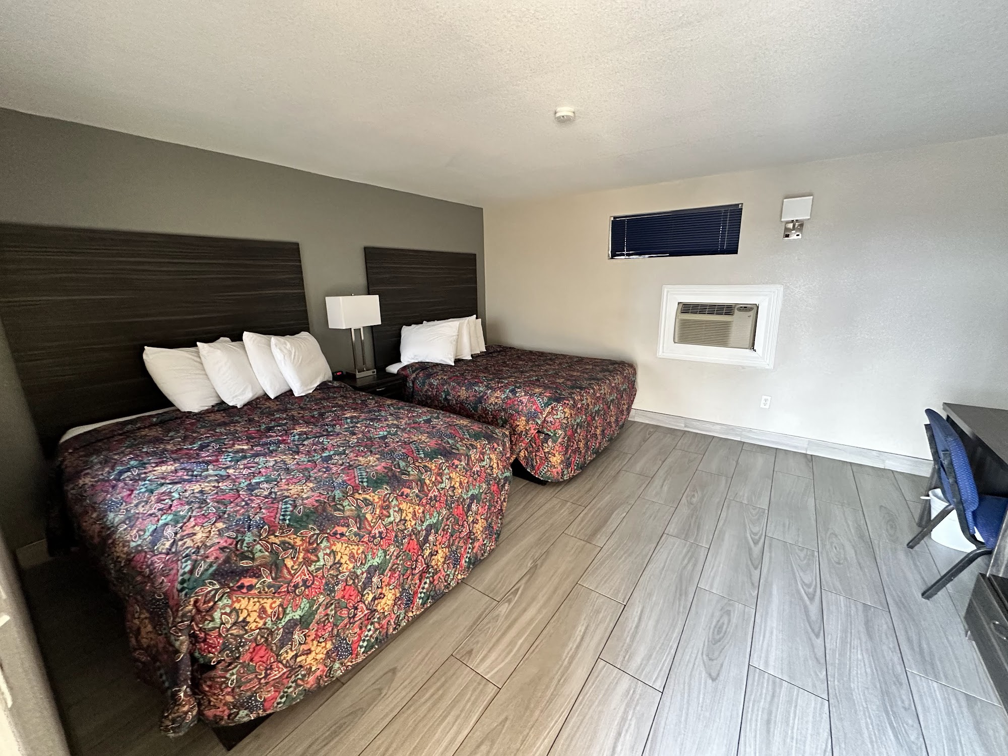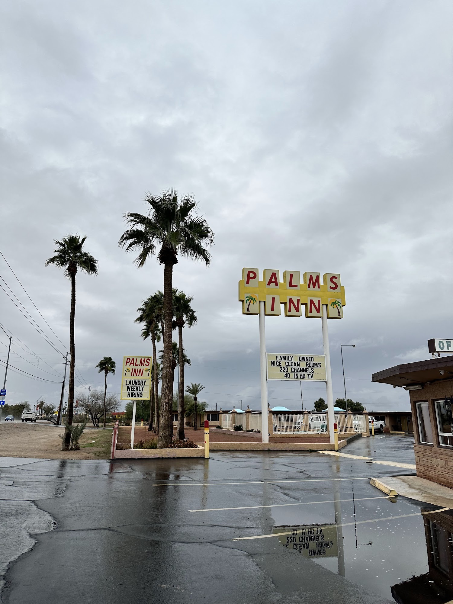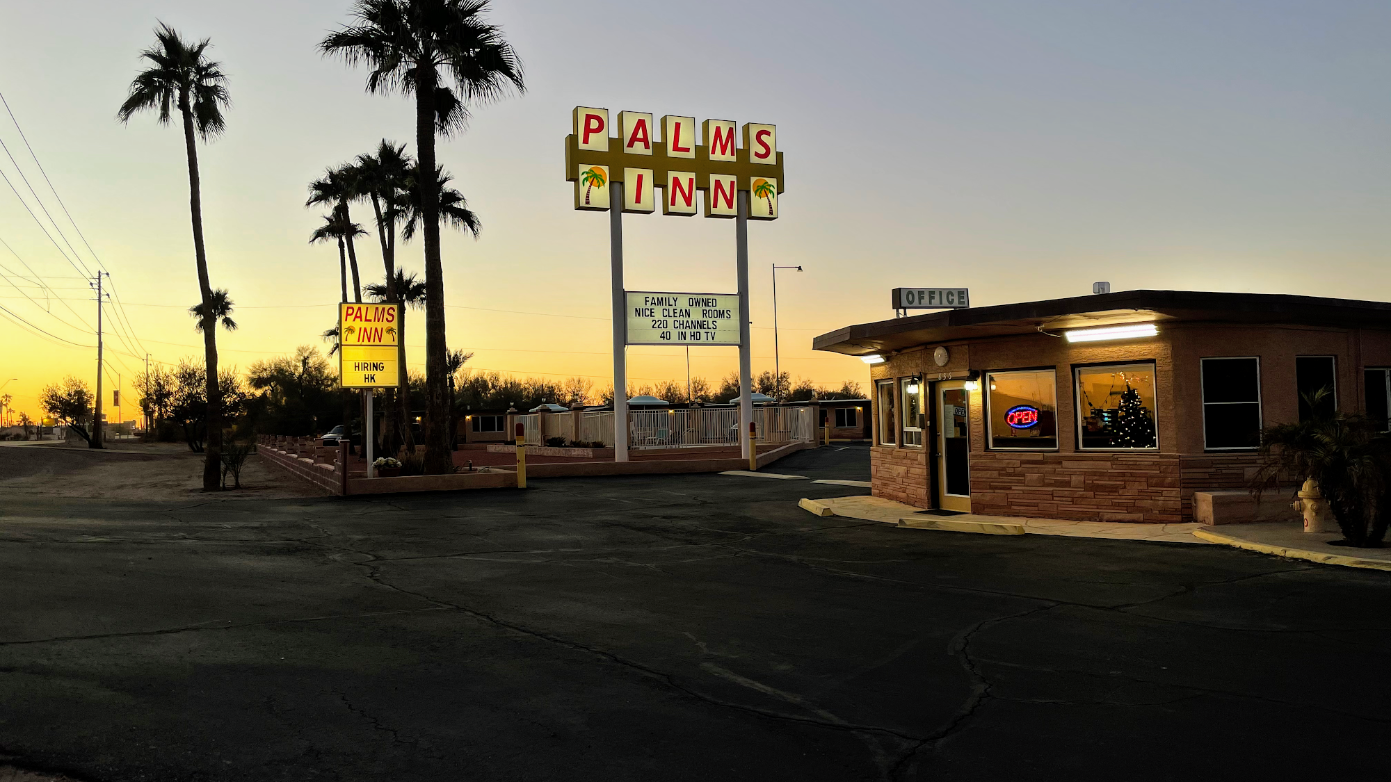 Palms Inn is a simple, clean, and affordable place to stay. The rooms are basic but well-maintained, with comfortable beds, updated bathrooms, and amenities like a refrigerator, microwave, and small coffee maker. The inn is located close to many geocaches, making it a convenient stop for outdoor enthusiasts. While the inn has a friendly and helpful staff, some guests experienced minor issues such as thin walls, noise from nearby neighbors and a passing train, and a limited breakfast area. The atmosphere is quiet and suitable for travelers seeking a peaceful overnight stay. The inn is family-run and offers good value, especially for those passing through from places like San Diego to Sedona. Some reviews mentioned dated features and a moldy air conditioner, but overall, the inn provides a decent and comfortable experience for guests looking for a budget-friendly option. Palms Inn is a practical choice for travelers wanting a clean, simple place to rest during their trip.