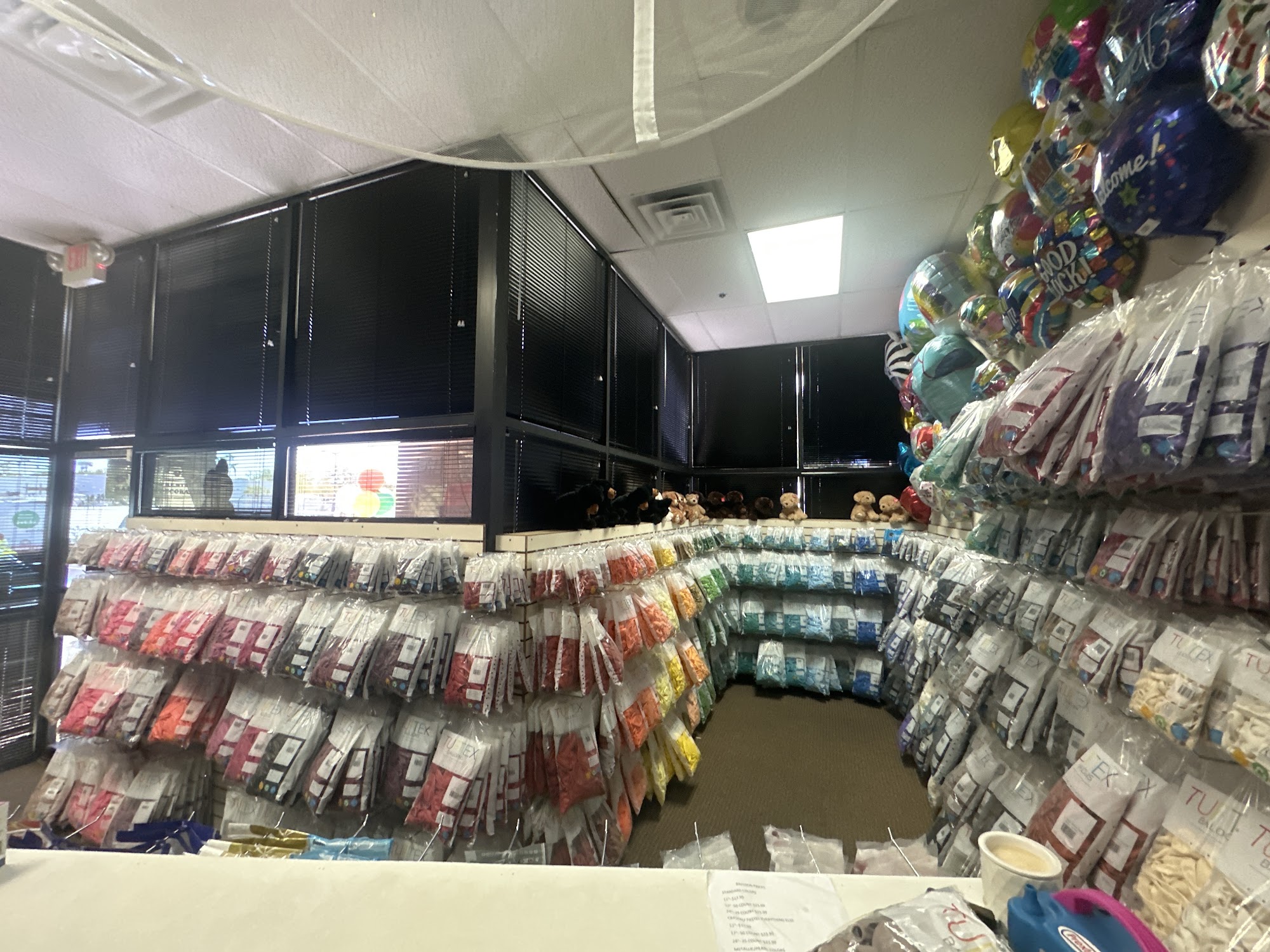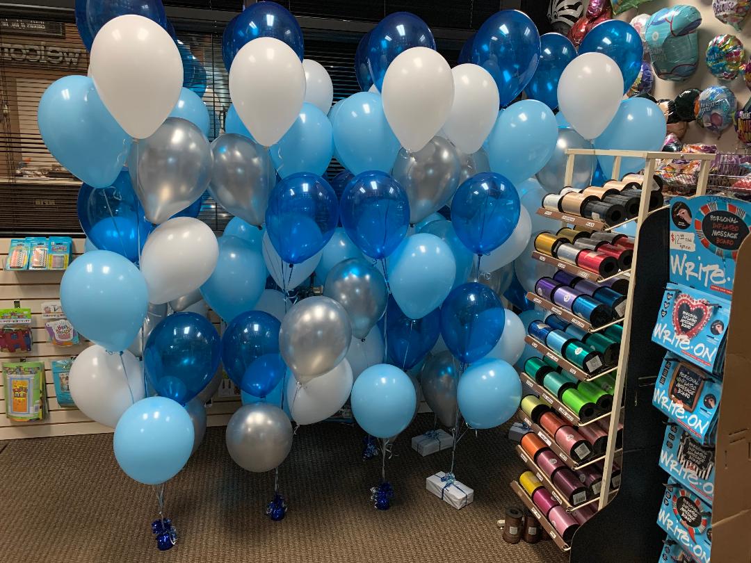 I just went in yesterday to BUBBLES OF JOY to buy balloons. They were very helpful and even blew some latex balloons up so I could see what the color looked like when it filled to choose the right Blue. I highly recommend them!